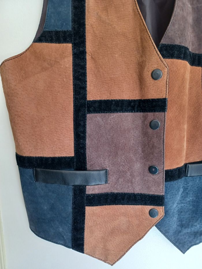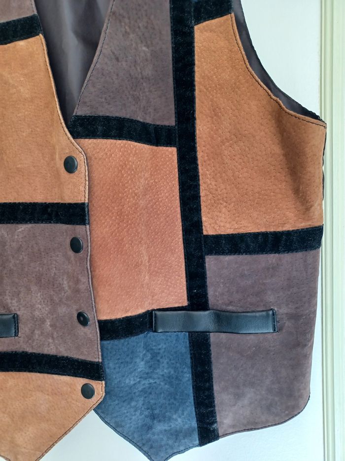 Veste/gilet sans manche vintage patchwork en cuir suédé taille M - photo numéro 3