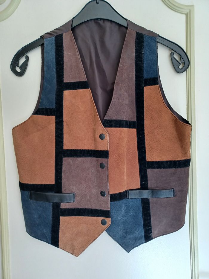 Veste/gilet sans manche vintage patchwork en cuir suédé taille M - photo numéro 1