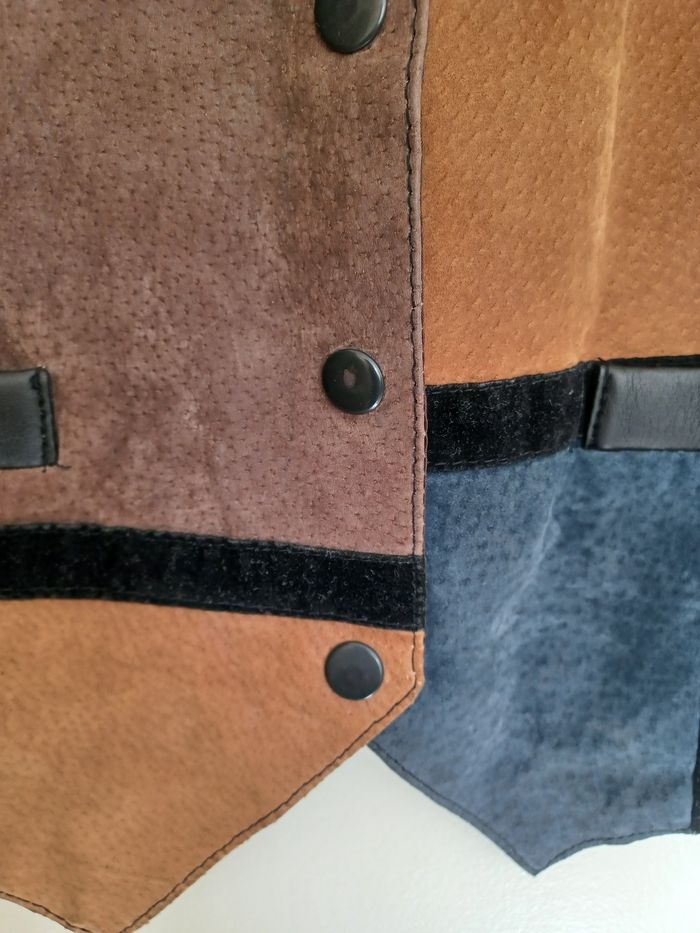 Veste/gilet sans manche vintage patchwork en cuir suédé taille M - photo numéro 9
