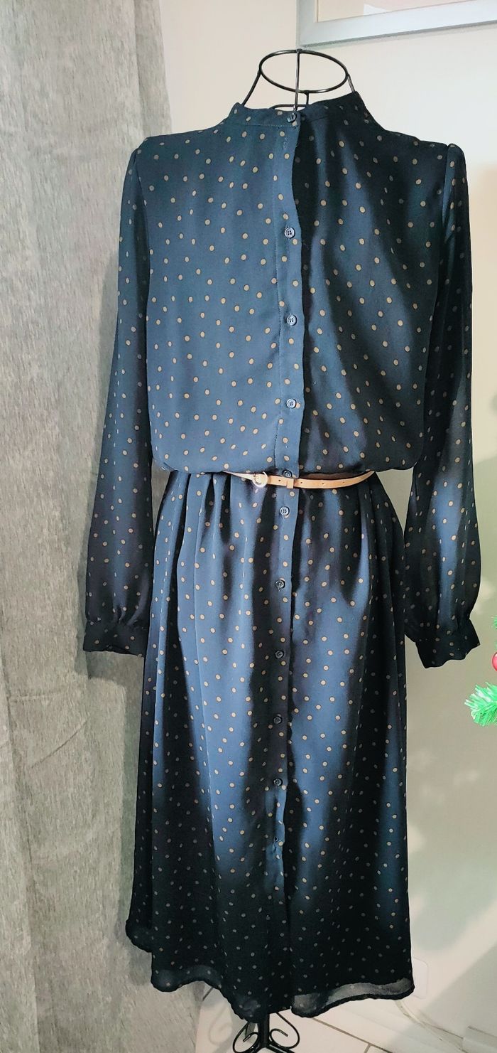 Robe légère avec manches longues transparentes. 2 boutons manquants en bas de la robe. Sinon très bon état. Ceinture non fournie. Prix d'achat d'origine : 50 euros