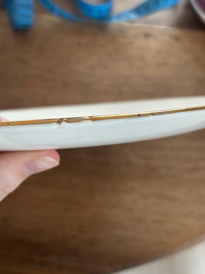 Vintage ancien Ensemble de 5 assiettes à dessert Thème : équitation et chevaux, à l’effigie de Masina Reine du trotting En très bon état, possibles petites irrégularités en regard de la dorure Diamètre 18,5 cm