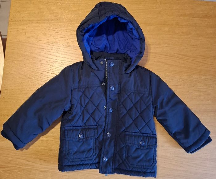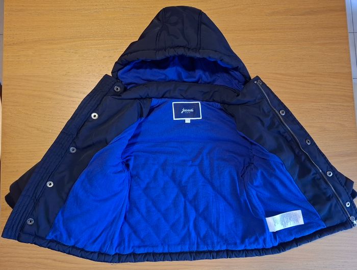 Manteau bébé Jacadi – 23 mois – Excellent état Très joli manteau Jacadi pour bébé, taille 23 mois. Couleur bleu marine, chaud et confortable, idéal pour l’hiver. Capuche intégrée, fermeture par boutons-pression et zip. Deux poches à l’avant.