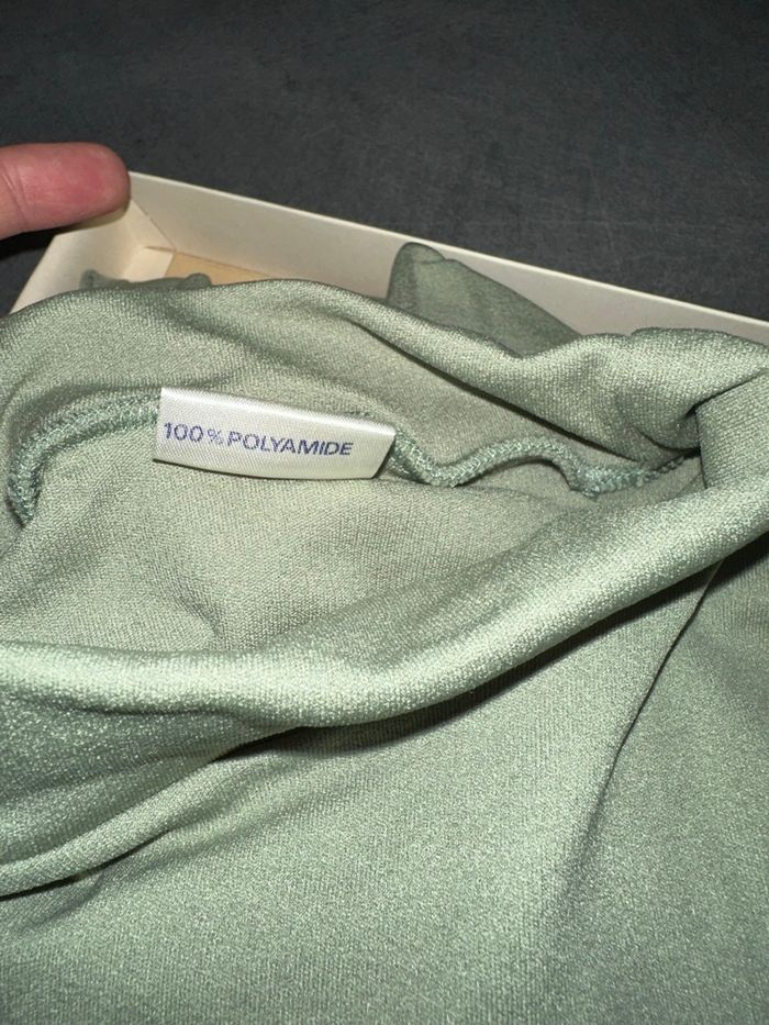 Sous pull - Neuf encore dans sa boîte d’origine - Taille 4 équivalent 42 XL Dimensions en bas de l’annonce - Vert amande - Col roulé - Tissus stretch - 100% polyamide - Fabrication française 🇫🇷 - Vintage, années 80’ - À porter en pull ou en sous pull Dimensions: - 45 à 52cm niveau aisselles - 62cm de long