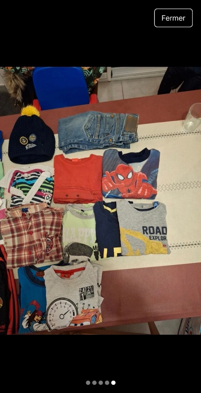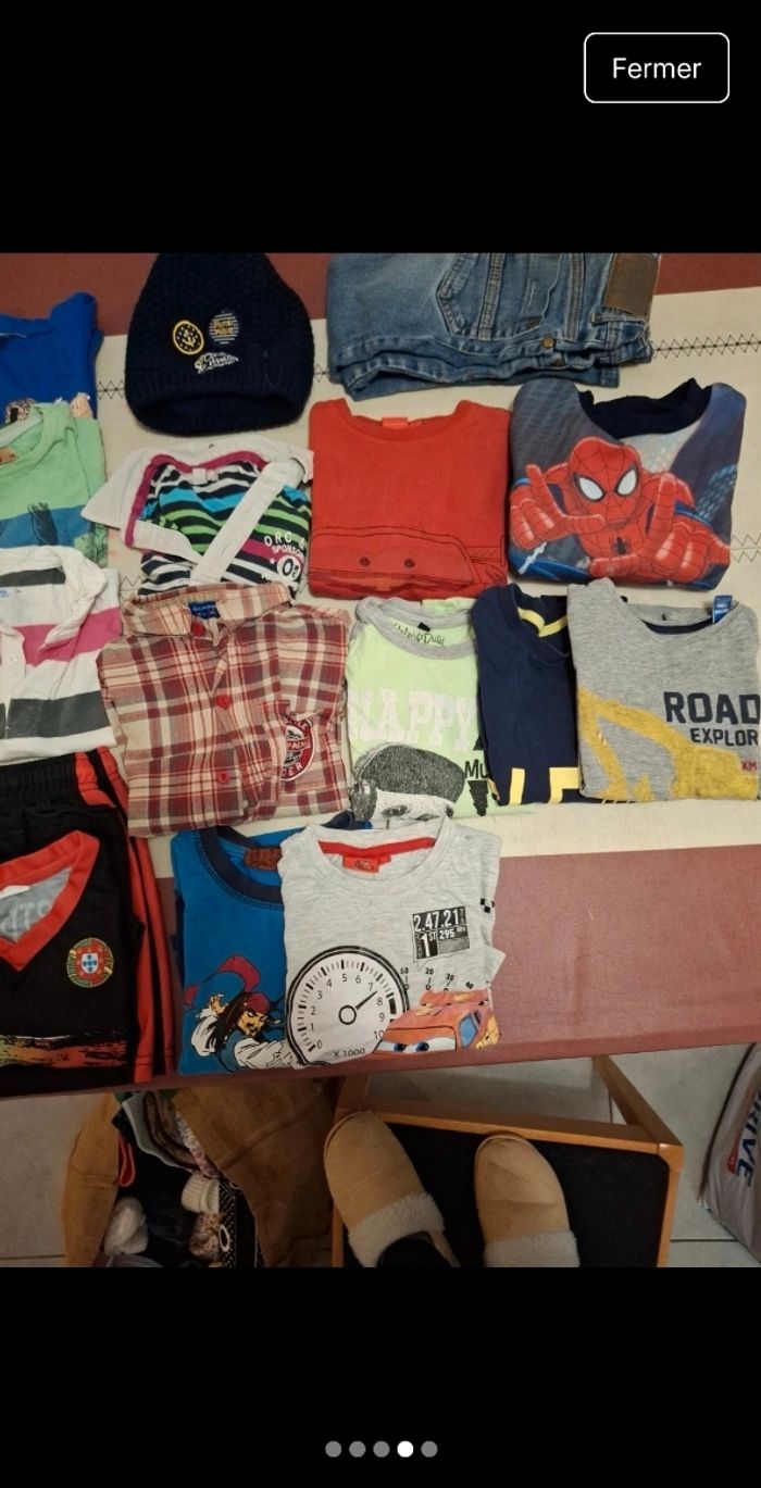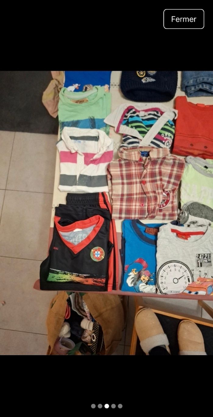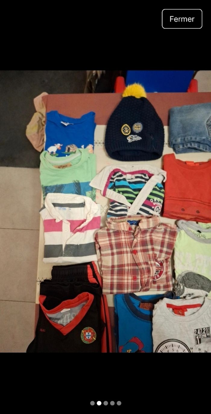 Lots vetements 4 ans garçon, tres bon état. - 1 tenue de foot Portugal (t-shirt + short) NEUVE - 2 hauts de pyjama - 1 polo - 2 t-shirts - 1 bonnet - 2 chemises manches longues - 3 tshirt manches longues - 2 sweats (usure : bouloche) - 1 pantalon