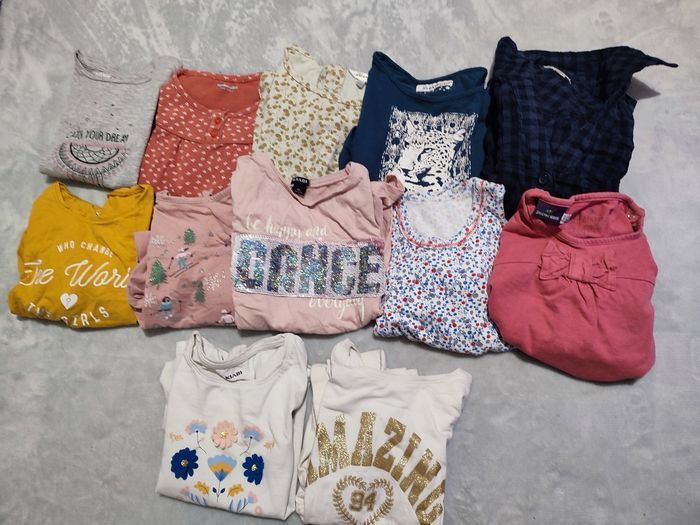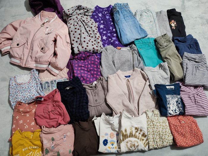 En tbe un peu de tout plus d'une trentaine de vêtements dont une doudoune,un manteau et deux vestes... Pulls, sous-pull, pantalons... Marques Tao, Okaïdi, orchestra, Vertbaudet.... J'ai mis le maximum de photos Il y a une légère tache sur le sous pull corail et la petite veste À partir de 1 euro Prix pour le lot N'hésitez pas à me demander si vous avez des questions