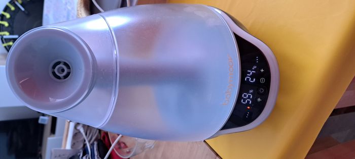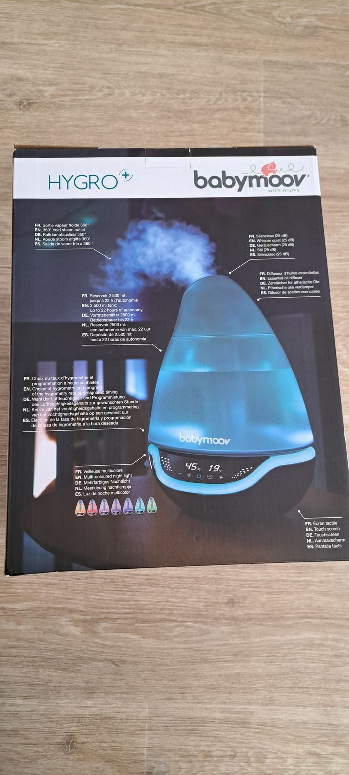 Vendu dans son emballage d'origine. Humidificateur avec vapeur froide, idéal pour créer un environnement sain pour bébé Régler facilement le taux d'humidité dans la chambre de bébé : réglage manuel ou automatique à l'heure souhaitée Autonomie optimale pour une diffusion en continu du coucher au lever (jusqu'à 22h d'autonomie) Diffuseur d'huiles essentielles, vapeur orientable à 360 degrés Technologie ultrasonique silencieuse #babymoov #humidificateur #bebe