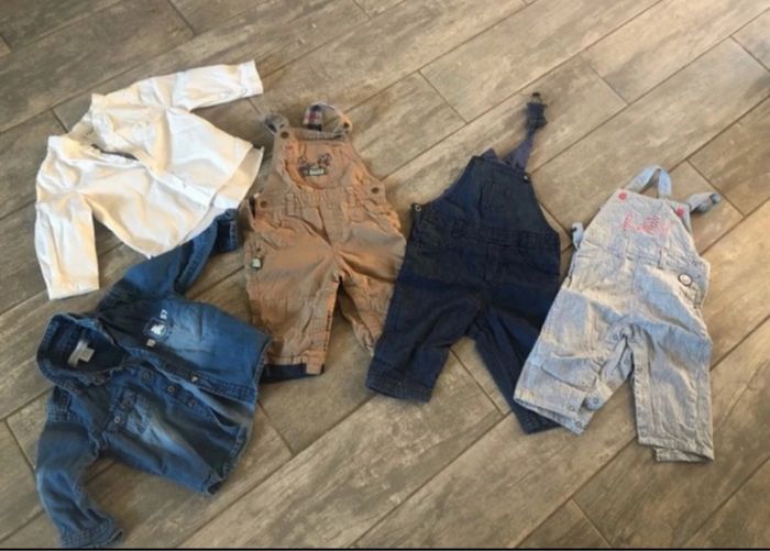 3 salopettes & 2 chemises - 6 mois - salopette la compagnie des petits - salopette sergent major - salopette nano nanette - chemise Lulu castagnette - chemise tape à l'œil