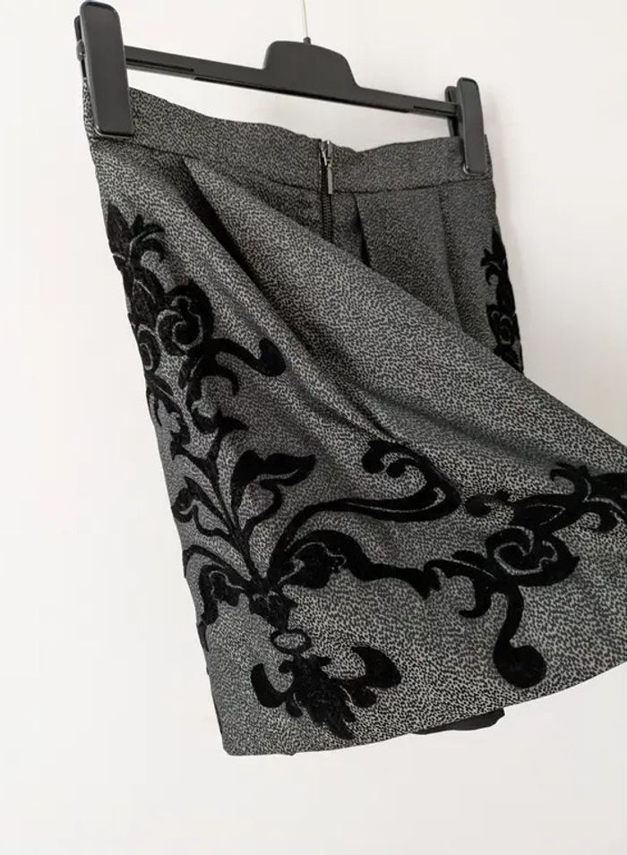 grise et noire décor noir en velours, doublée Largeur de la taille 38 cm Longueur 46,5 cm En excellent état