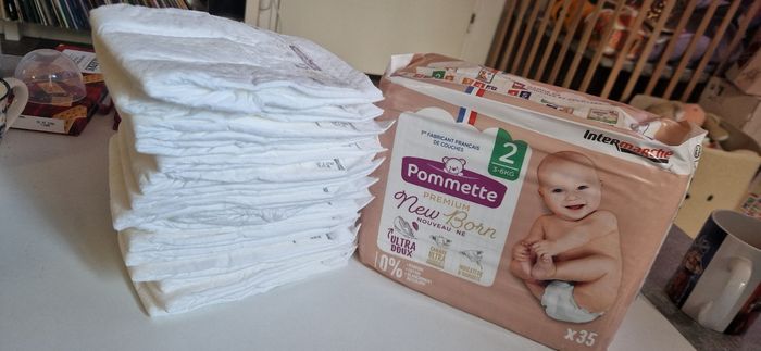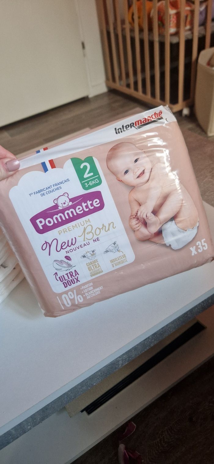 1 paquet neuf de couche + 16 couche de la marque pommette en taille 2 (3-6kg)