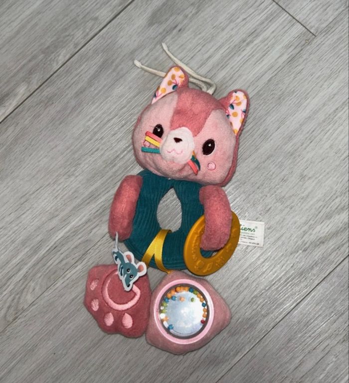 Comme neuf Explorez le jouet Jeanne anneaux multi-activités de Lilliputiens, un superbe jouet d'éveil conçu pour divertir et stimuler les bébés dès l'âge de 3 mois en proposant des activités sonores et tactiles. Ce jouet, facile à saisir pour les petites mains, éveille les sens de l'enfant par ses couleurs variées, ses sons distincts et ses textures diverses. Jeanne le chat stimule les aptitudes motrices et intellectuelles de l'enfant tout en le divertissant avec des activités telles que : Pouêt, anneau de dentition, mécanisme à billes, bruit papier et miroir.