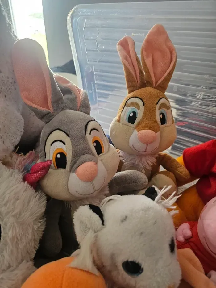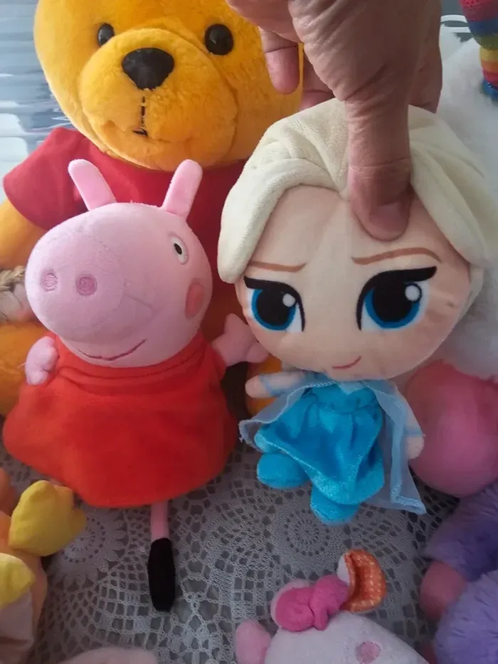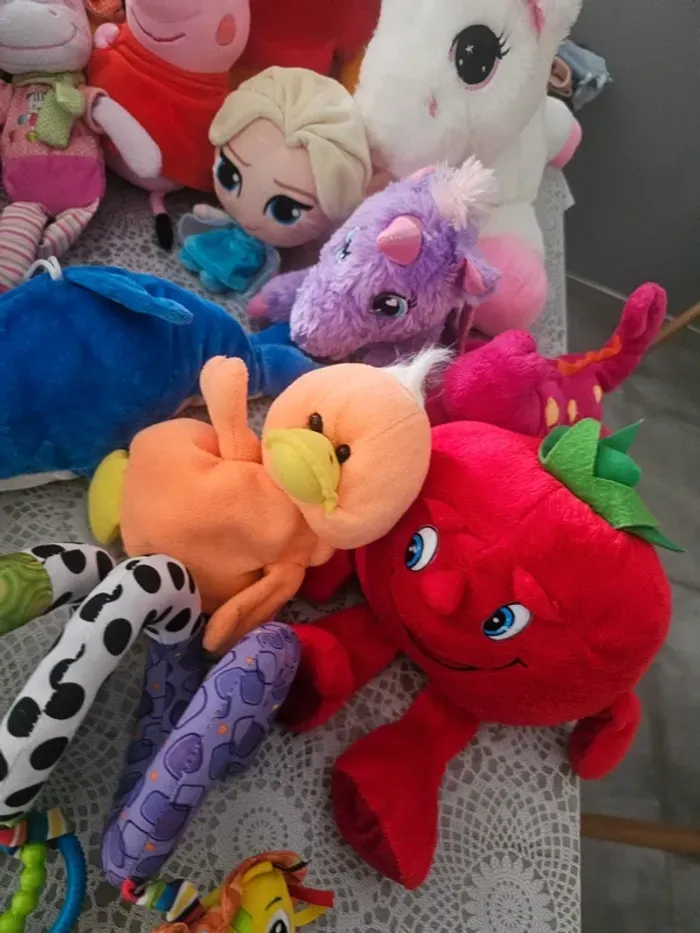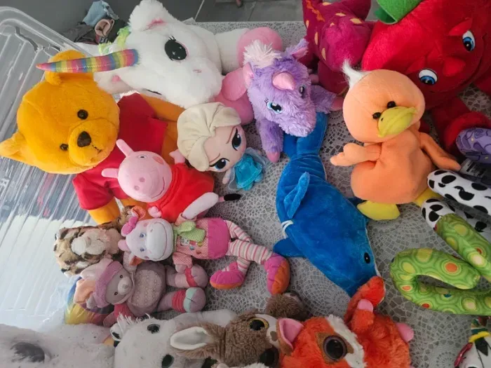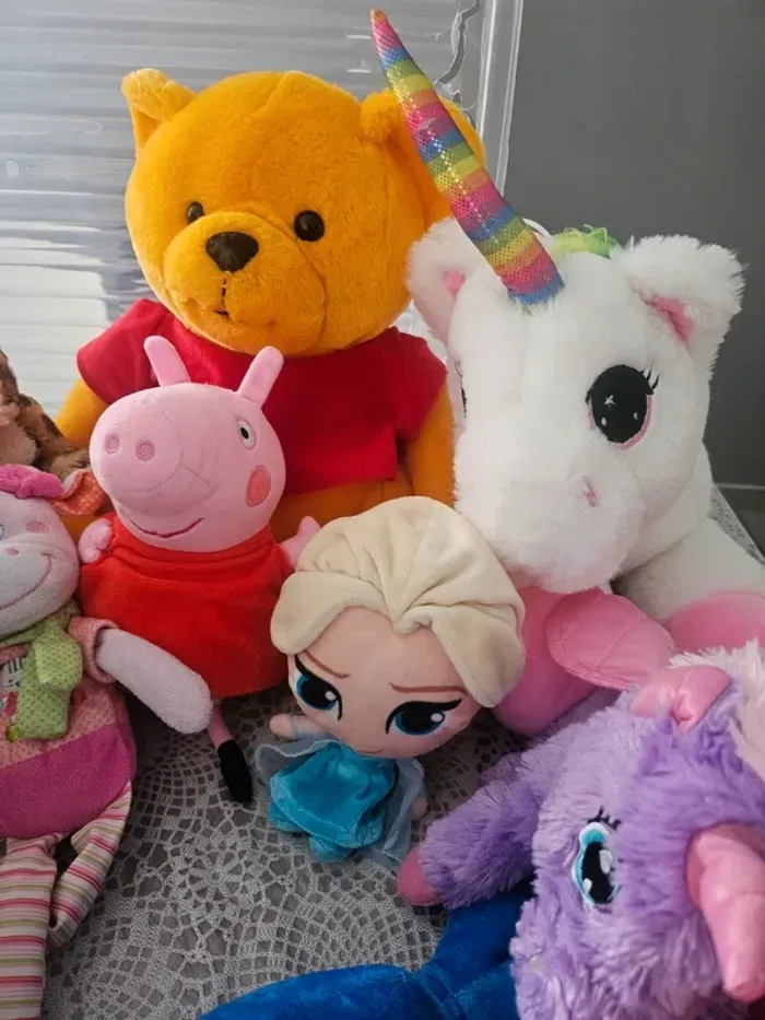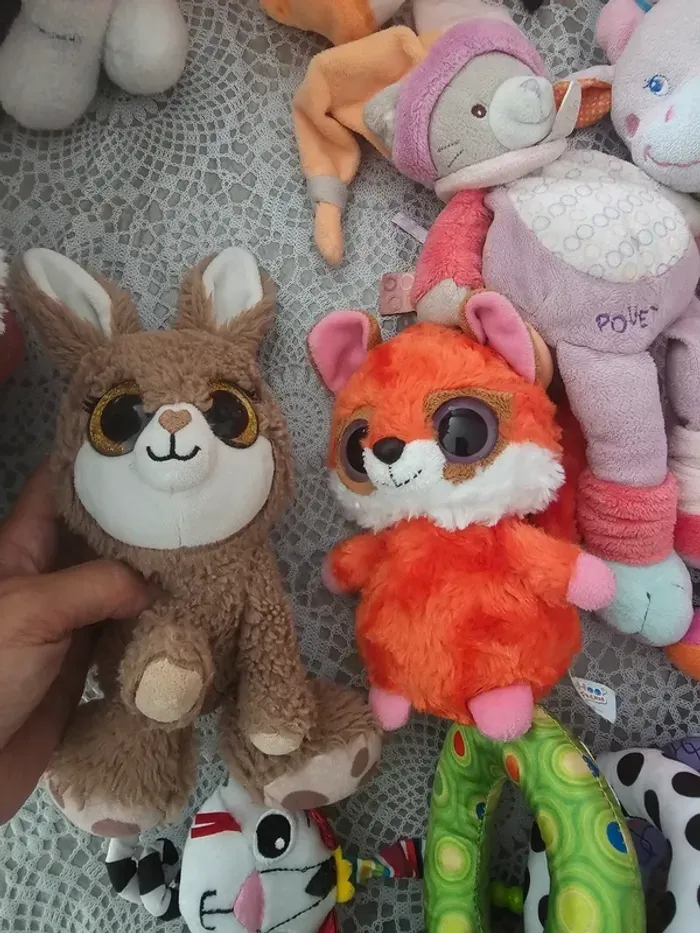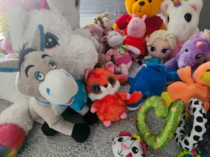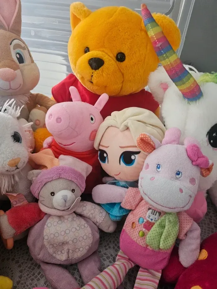🧸✨ GRANDE BRADERIE DE DOUCEUR ! ✨🧸 Bienvenue au royaume des peluches trop mims 😍 Tu veux du kawaii ? Du doudou qui sent le propre ? Du perso connu à petit prix ? Clique et reste 💕 💌 Tu as repèrés un doudou ? Des peluches ? Alors n'hésite pas Envoie-moi un message avec ta sélection. 📦 Envoi mini format possible même avec plusieurs peluches ! 🫧 Tous lavés, tous doux, tous prêts pour une nouvelle maison 💕 🏡 Maison SANS animaux, SANS fumée 🚭 🎯 TEAM PELUCHES 💸 MINI BUDGET (0,50 € – 1 €) • 🐯 Tigre – 0,50 € • 🐅tigre blanc 0,50€ • 🐥 Canard qui fait marionnette – 1 € • 🎠 âne foot – 1 € • 🐬 dauphins 0,50 € • 🐇 marron - 1€ avec les yeux grand et brillant 💖 PETITS CHOUCHOUS (2 € – 3 €) • creature imaginaire type dinosaure avec hochet à l'intérieur 2€50 • 🐻 Ourson jaune – 2 € • 🦊 Renard roux – 2 € • 🍓 Fraise / 🦄 Licorne violette – 3 € 🌟 STARS DE DESSIN ANIMÉ • ❄️ Elsa / Reine des Neiges ⚠️VENDU⚠️ • 🐷 Peppa Pig – 4 € • 🐇🐰 Lapin inspiré dessin animés panpan 🤪 4€ l'une ou 7€ les deux 🌀 ÉVEIL & MAGIE • Spirale d’activité Lamaze – 7€ Jouet spirale d’éveil pour bébé Forme : spirale souple, conçue pour s'enrouler autour d'une barre de poussette, cosy, lit bébé ou parc. •🧸 Doudou BabyNat “POUET” – 3 € •👶 doudou vache 1€ Lot de peluche / jeu d'éveil bébé 10€ 🦄LICORNE : fan de Licorne fille • Licornes brillantes arc-en-ciel 🦄🌈 :  7€ l'une celle Taille XL – 7€  • Lot complet des 3 → 20 € 📸 Plus de photos ? Zoom ? Mesures ? Je suis dispo ✨