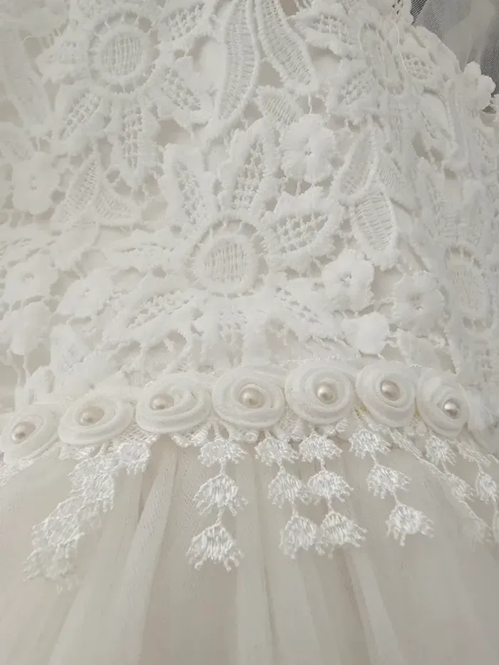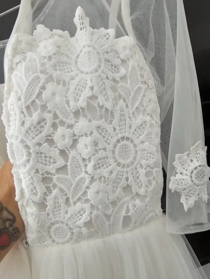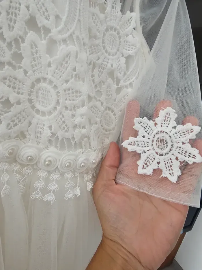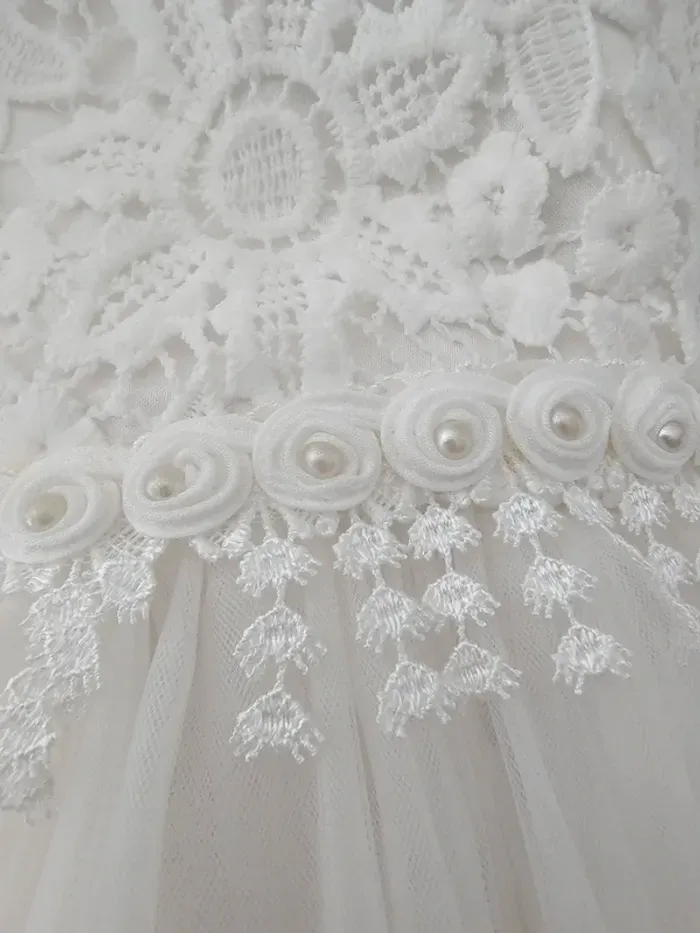 👗 Robe blanche cérémonie - état impeccable ! 👗 💒 Idéale pour baptême, communion, mariage ✨ Portée seulement quelques heures, comme neuve ! 🌸 Haut en dentelle florale, le bas en tulle fluide, doubler de l'intérieur. 📏 Taille : 12 ans (marque Les Voiliers)