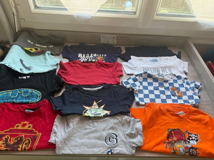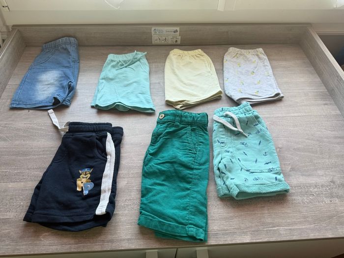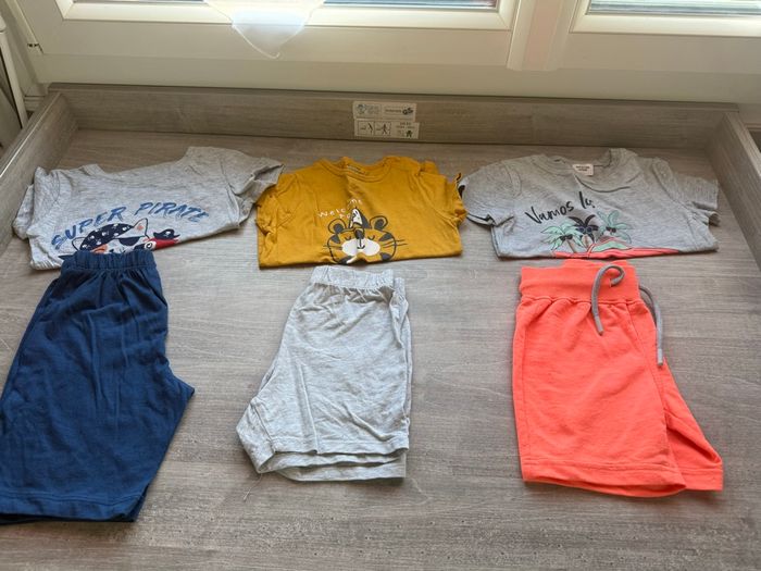 Lot 36 mois - 3 ans - 1 bas de jogging Puma 3-4 ans - 1 pull zippé à capuche Adidas 3-4 ans - 12 tee-shirts - 7 shorts - 3 pyjamas short/tee-shirt - 4 bodies