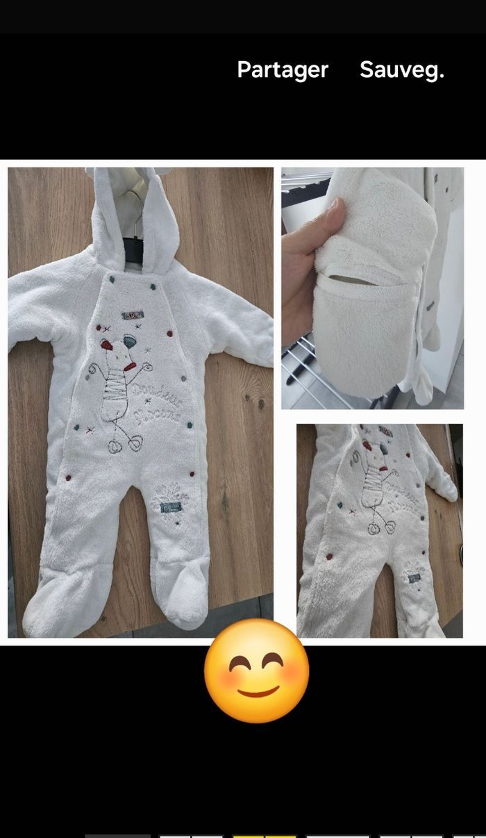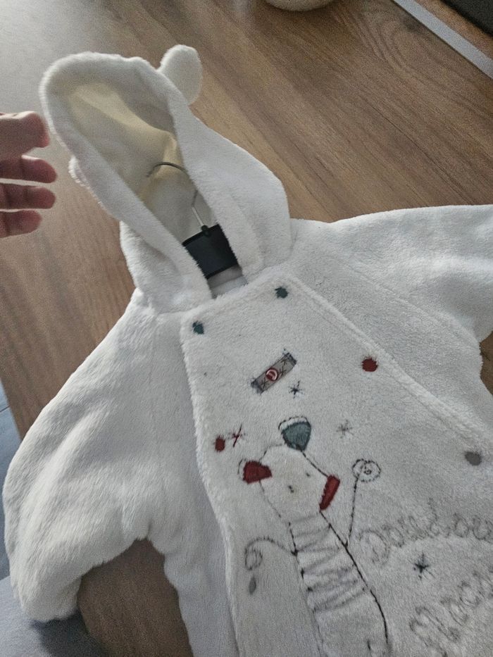 Vends cette combinaison bébé 3 mois pour affronter le froid . Hyper confortable , douce et pratique PROPRE Pas de tâche pas de trous Maison sans sans animaux et non fumeur Envoi soigné et rapide max 48h ( sauf le week-end colis déposé le lundi)