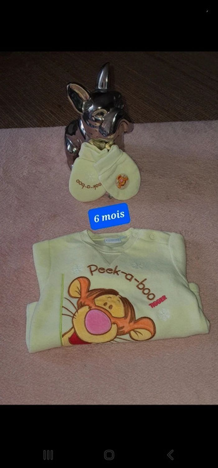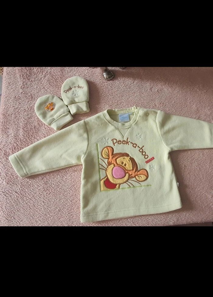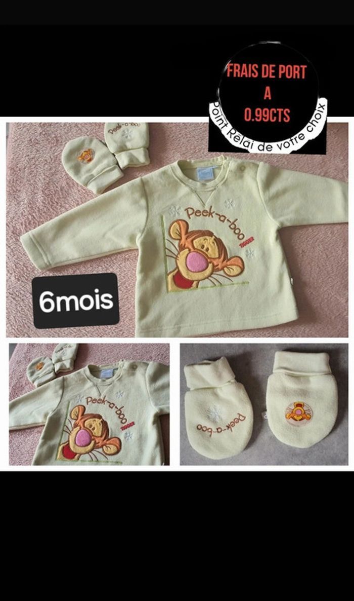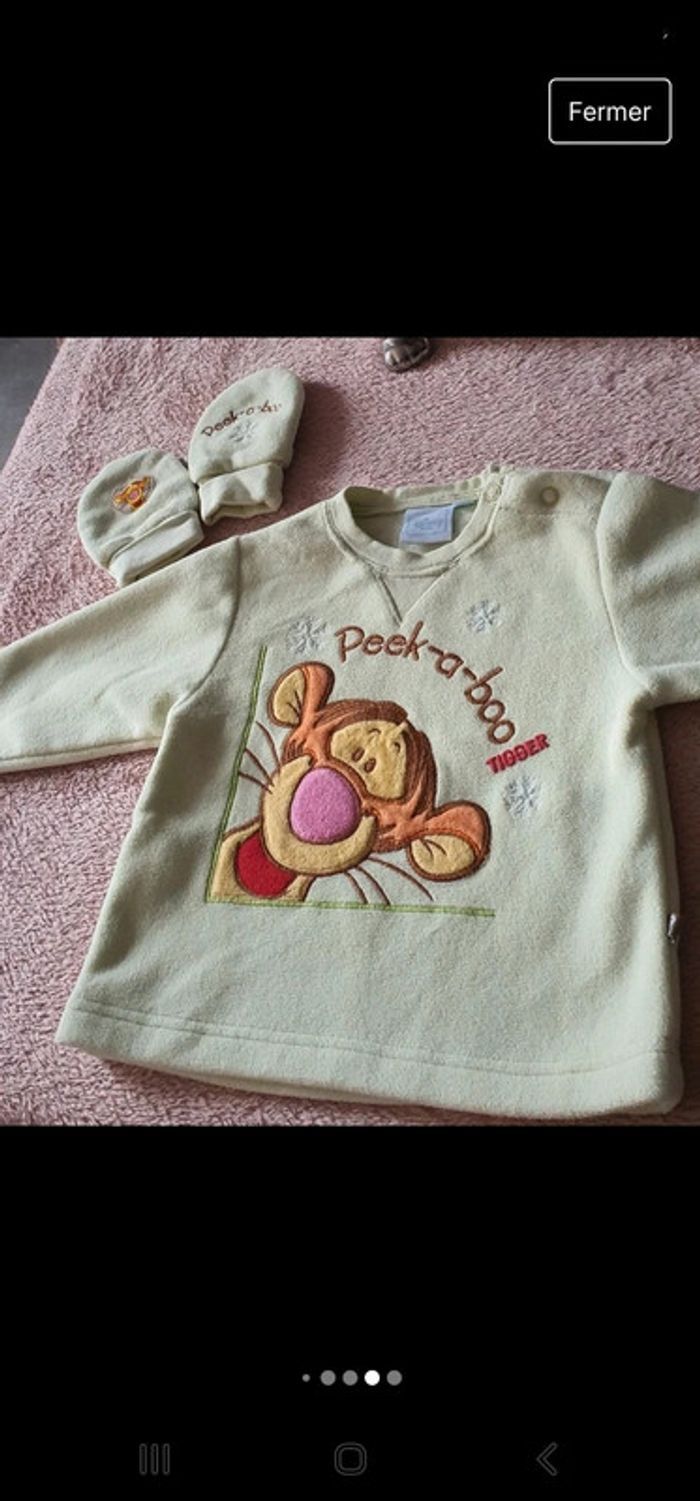 Vends ce pull typer doux + moufles ( idéal pour bébé ne se griflé pas - tigrou l'ami de winnie l'ourson de la marque Disney baby Dessin animé taille 6 mois Vêtements lavé propre - pas de trous