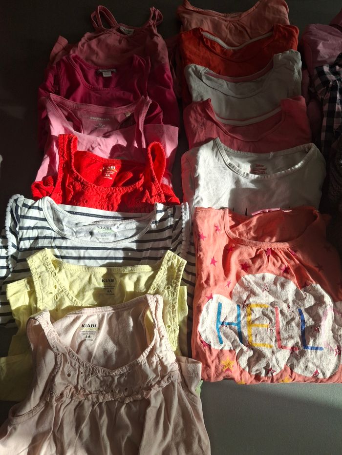 vêtements fille 6 ans (17 pieces) - 12 Tee-shirt manches courtes/ sans manches - 1 Tee-shirt manches longues - 1 chemise - 1 pull - 1 blouson léger - 1 veste