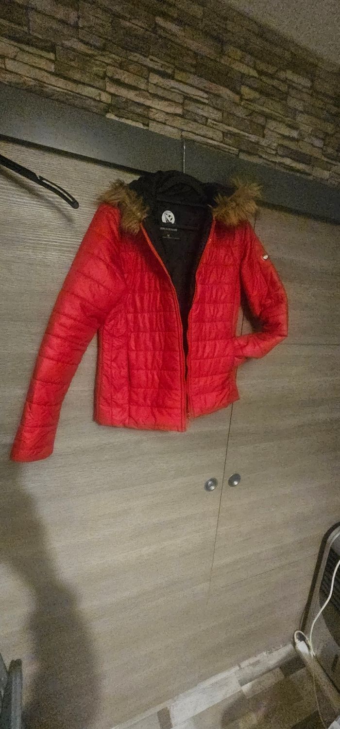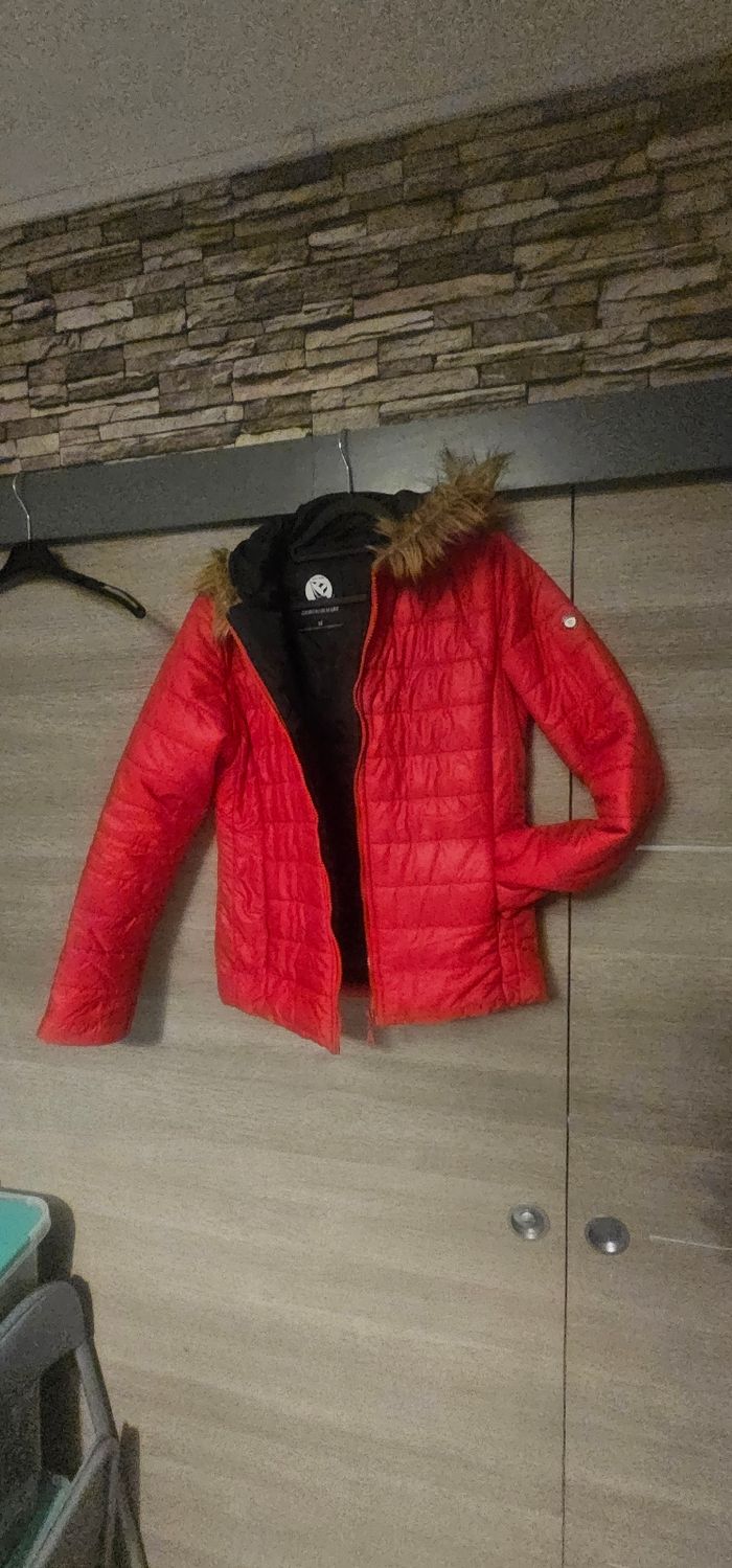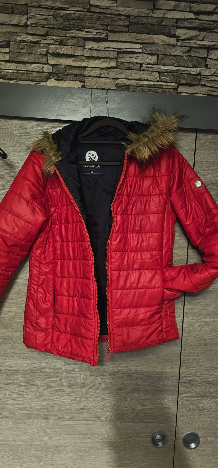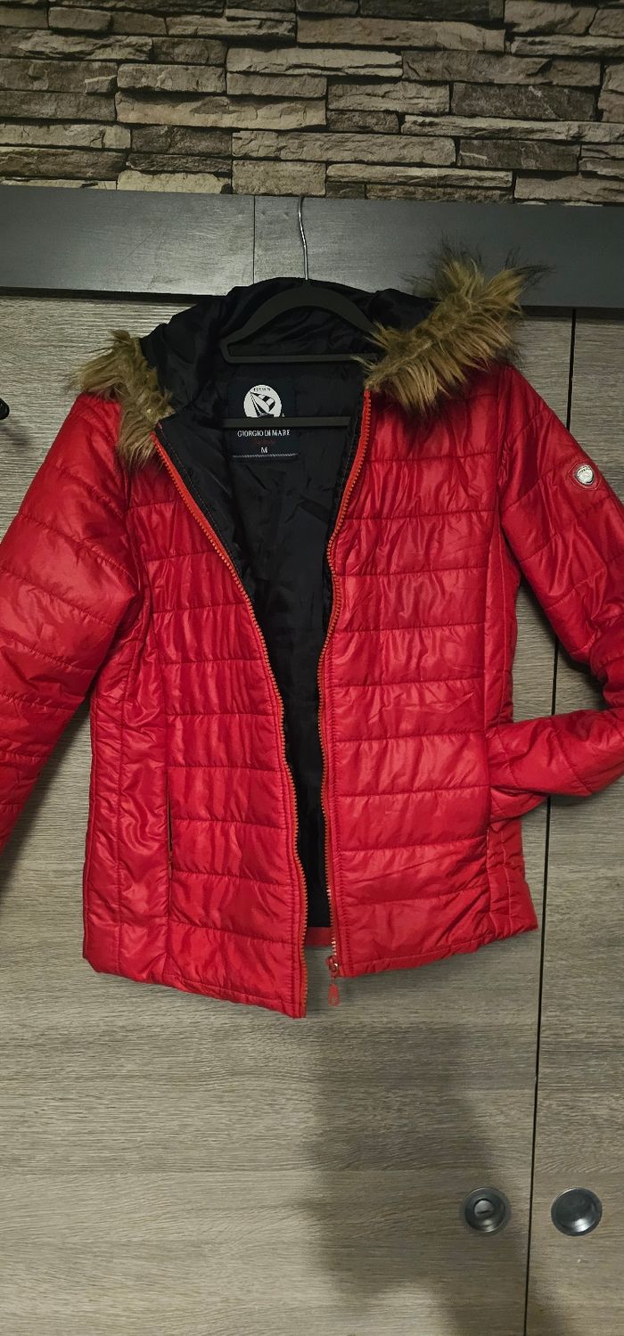 Doudoune femme Giorgio Di Mare – M Couleur rouge, capuche avec fausse fourrure. Très bon état, peu portée. Chaude et légère