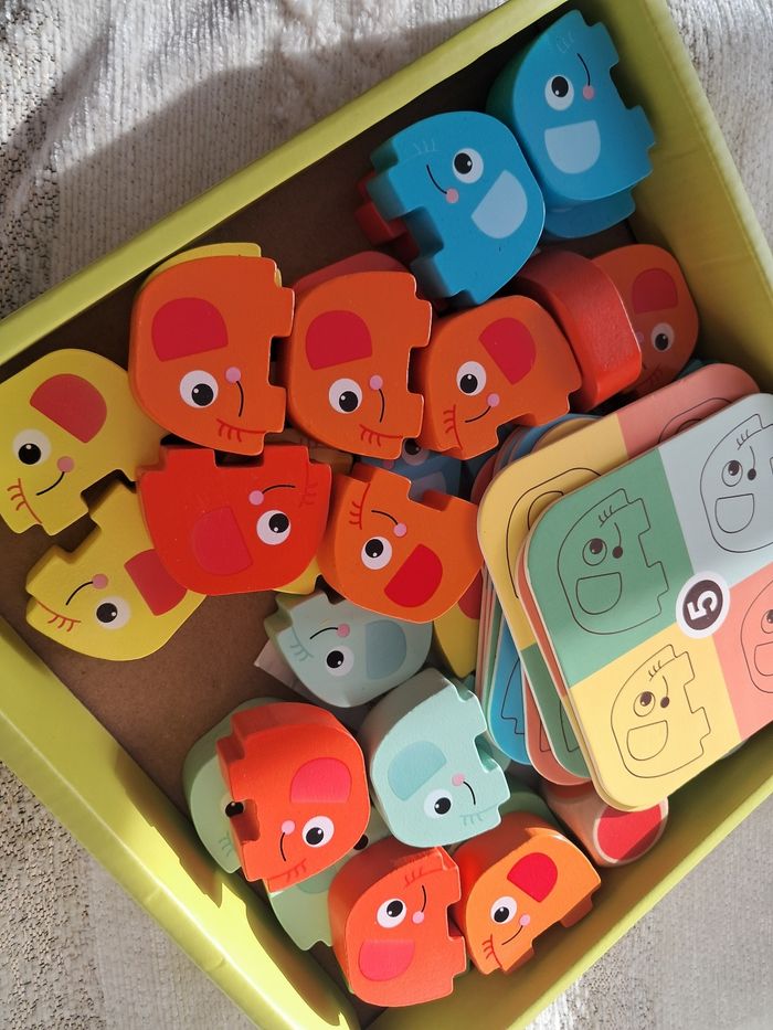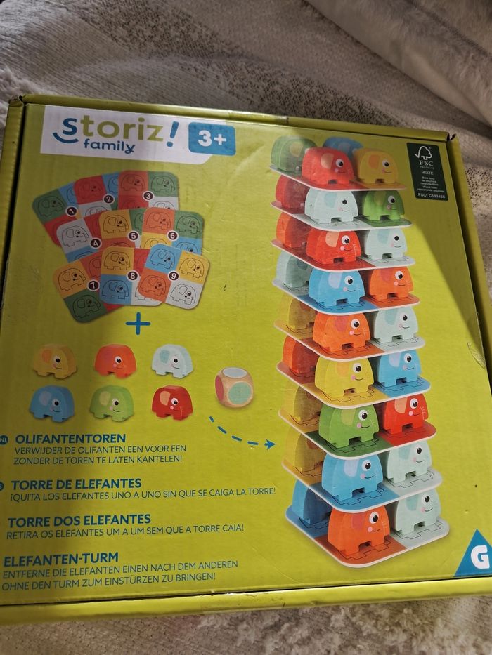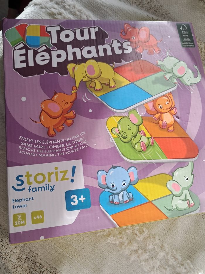 Tour éléphants en bois. A partir de 3 ans. Les pièces sont toutes présentes et comme neuves.