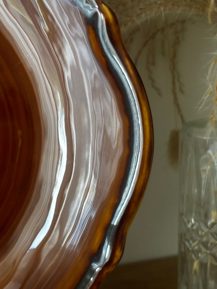Vintage très joli plat de présentation Lunéville Couleur marron miel tournant vers le jaune avec aspect spiralé 27 cm de diamètre En parfait état: n’a jamais été utilisé
