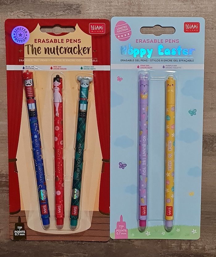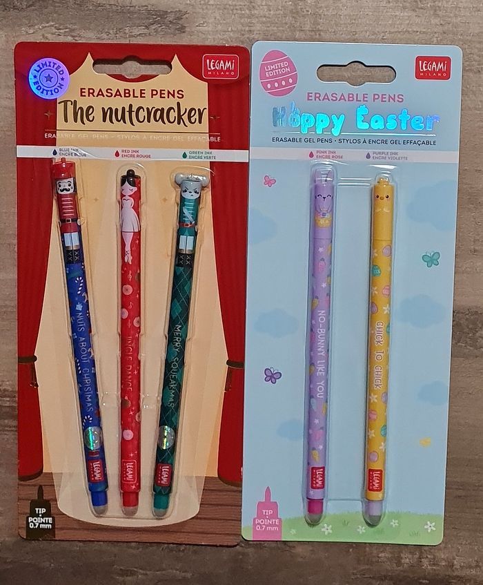 Legami Effaçables - NEUFS = 5 Stylos -> 1 Set NOEL 2025 : LIMITED EDITION 3 Stylos LEGAMI effaçables : Collection Casse Noisette Nutcracker - Neufs -> 1 Set PAQUES 2025 : LIMITED EDITION 2 Stylos LEGAMI effaçables : Lapin et Poussin de Pâques - Neufs Éditions Plus Commercialisées Définitivement depuis de nombreux mois Neufs - Authentiques LEGAMI Au besoin, nous avons toutes les éditions Legami effaçables et lovely friends qui existent depuis leurs débuts en 2020, toutes les éditions les plus recherchées, tout n'est pas encore en ligne, nous demander 🥰