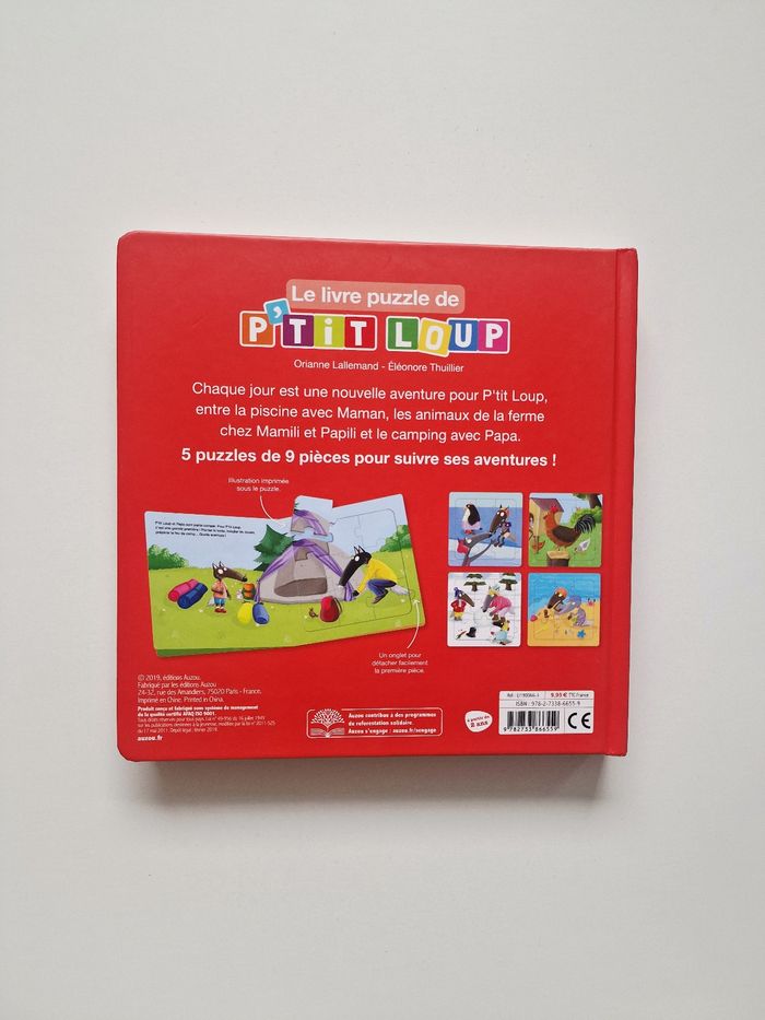 🚨 Prix fixe Livre puzzle Titre : Le livre puzzle de P'Tit Loup Éditions : Auzou Éveil Auteures : Orianne Lallemand et Éleonore Thuillier État : très bon état - complet Cinq puzzles de neuf pièces pour suivre les aventures de P'tit Loup à la piscine, à la neige, à la ferme, au camping et à la mer. Âge : à partir de 2 ans Hauteur : 22 cm Largeur : 22 cm Épaisseur : 2 cm Retrait sur place ou envoi.