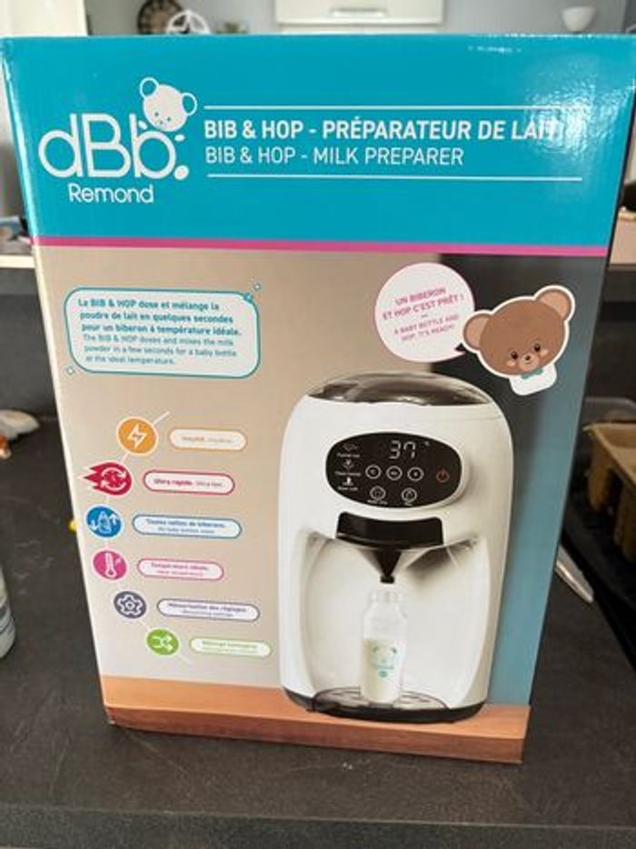 Machine à biberon très pratique Utilisation Simple et Intuitive : Grâce à son écran tactile, le BIB & HOP permet de choisir le volume d’eau, la température et la quantité de lait adaptée. Ses icônes claires facilitent la programmation, pour préparer chaque biberon en un seul geste Préparation Ultra Rapide : En seulement 10 secondes pour un petit biberon et 30 secondes pour un grand, le BIB & HOP prépare un biberon de lait homogène et à la bonne température. Idéal pour les repas de nuit ou les parents pressés Deux Modes au Choix pour Plus de Flexibilité : Le mode “Milk” mélange directement la poudre et l’eau, tandis que le mode “Water Only” délivre uniquement l’eau à la température choisie. Parfait pour s’adapter aux besoins et habitudes de chaque bébé Température Idéale et Mémoire Intelligente : Quatre températures disponibles : 22°C, 37°C, 42°C et 50°C, selon le moment du repas. Le préparateur mémorise les derniers réglages, simplifiant la préparation des biberons suivants Une Marque Engagée Pour Les Familles : Depuis 1946, dBb Remond imagine des accessoires bébé pensés pour faciliter le quotidien des parents. Ses produits allient sécurité, praticité et confort pour accompagner chaque étape des premières années