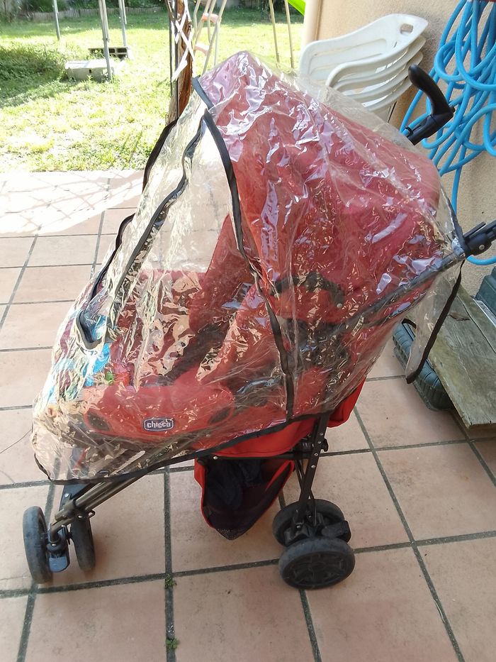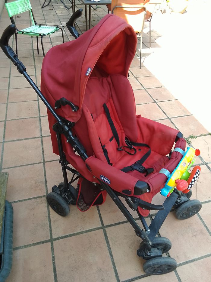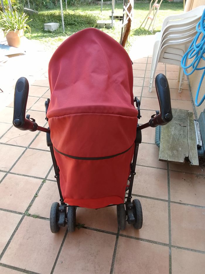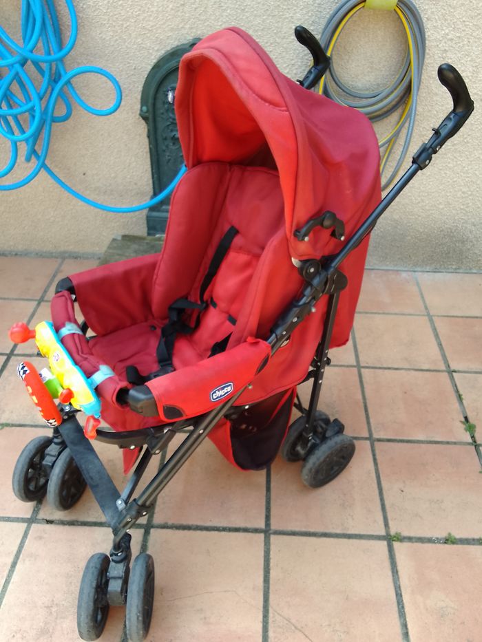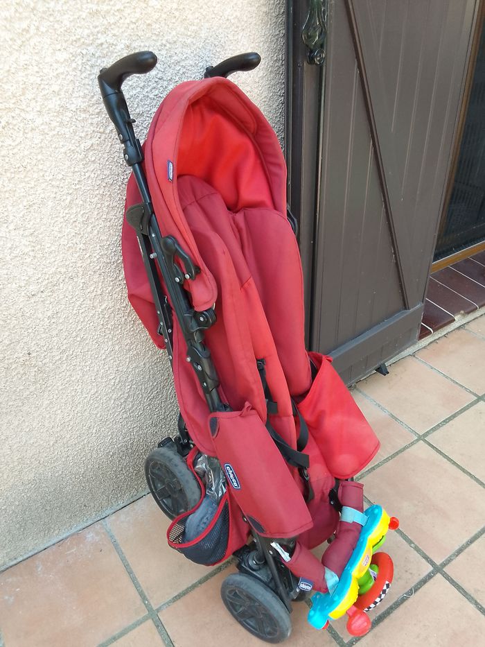 Poussette Chicco rouge année 2020 Entierrement déhoussable afin de permettre entretien Livrée avec capuche pour protection soleil, jeux enfant et housse pluie Pliable Équipée de 4 roues doubles motrices et dirigeables permettant tout type d'accès