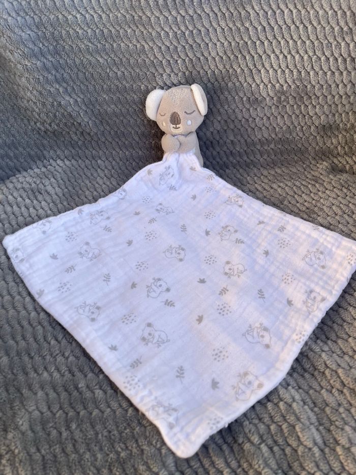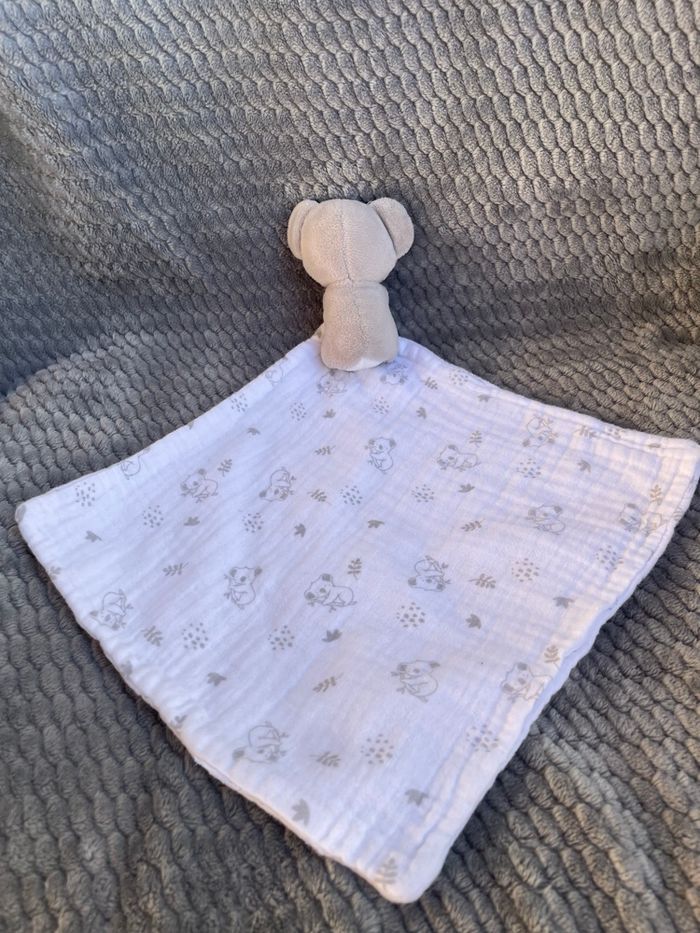 Doudou mouchoir Koala gris et lange blanc Maisons du Monde Occasion en excellent état (étiquette coupée) Vous achetez le doudou que vous voyez sur la photo Un deuxième disponible