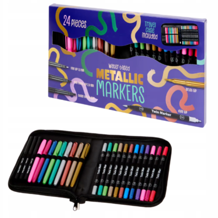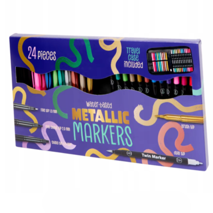 Étui de 24 feutres métalliques à double pointe pour calligraphie - photo numéro 1