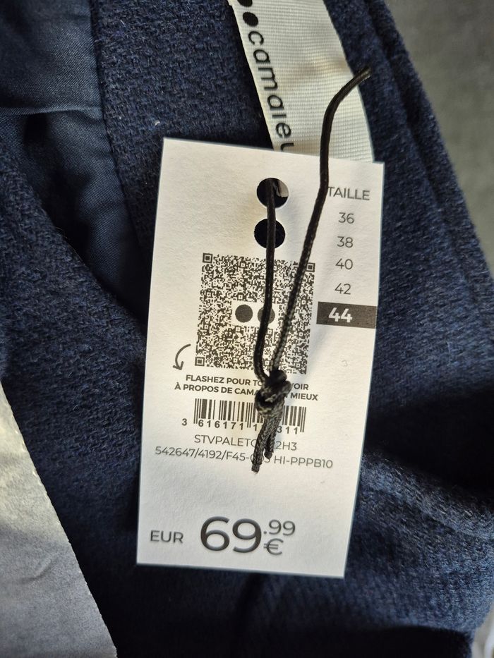 🧥 Blouson Court avec Boutons Bleu Marine Femme 🔎 Taille XXL 📏 Longueur de l'épaule au bas du manteau : environ 54 cm 💠 62% Polyester, 14% Acrylique, 14% Laine, 6% Polyamide, 2% Coton, 2% Viscose 🏷 Etat neuf avec étiquette, sous blister 🚚 Envoi Rapide et Soigné