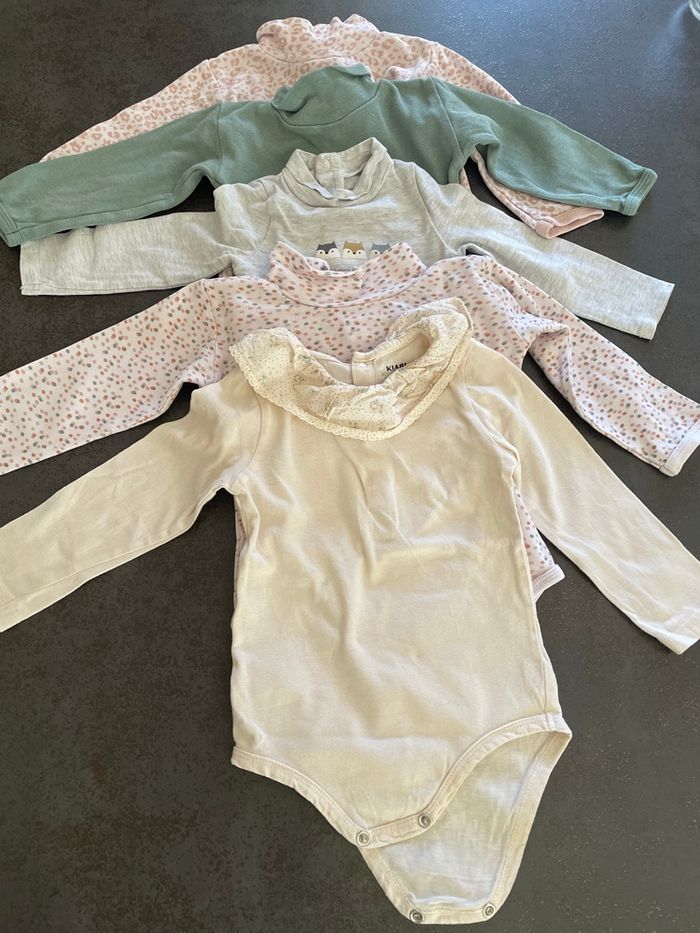 Lot de 5 bodies filles à col roulé et col dentelle  12 mois - photo numéro 1
