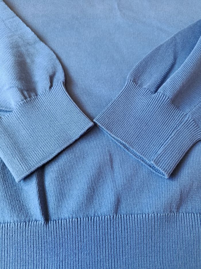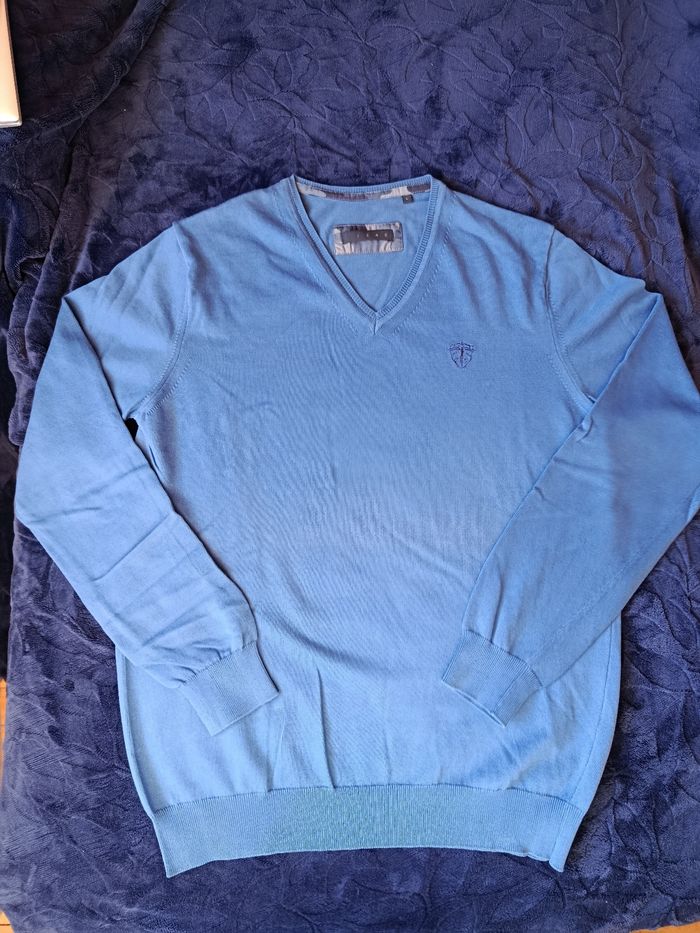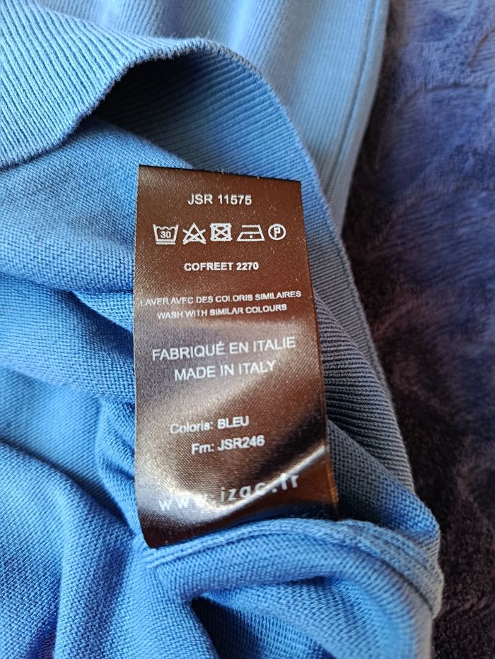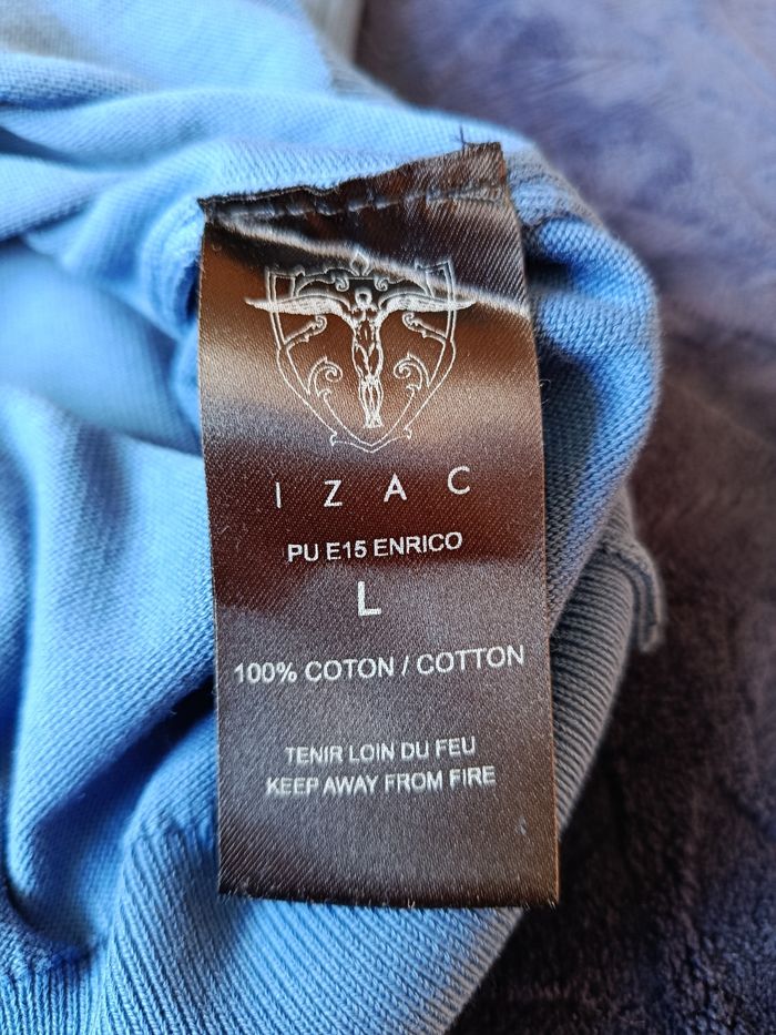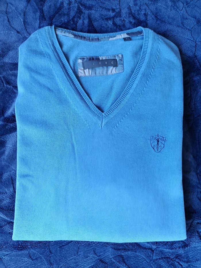 Pull fin Izac Taille L , col en V ,près du corps. 100% coton. Vraiment bon état,peu porté. Juste un petit repassage, pas de trous ni tâches .