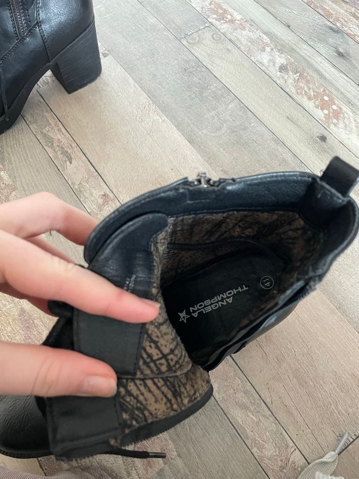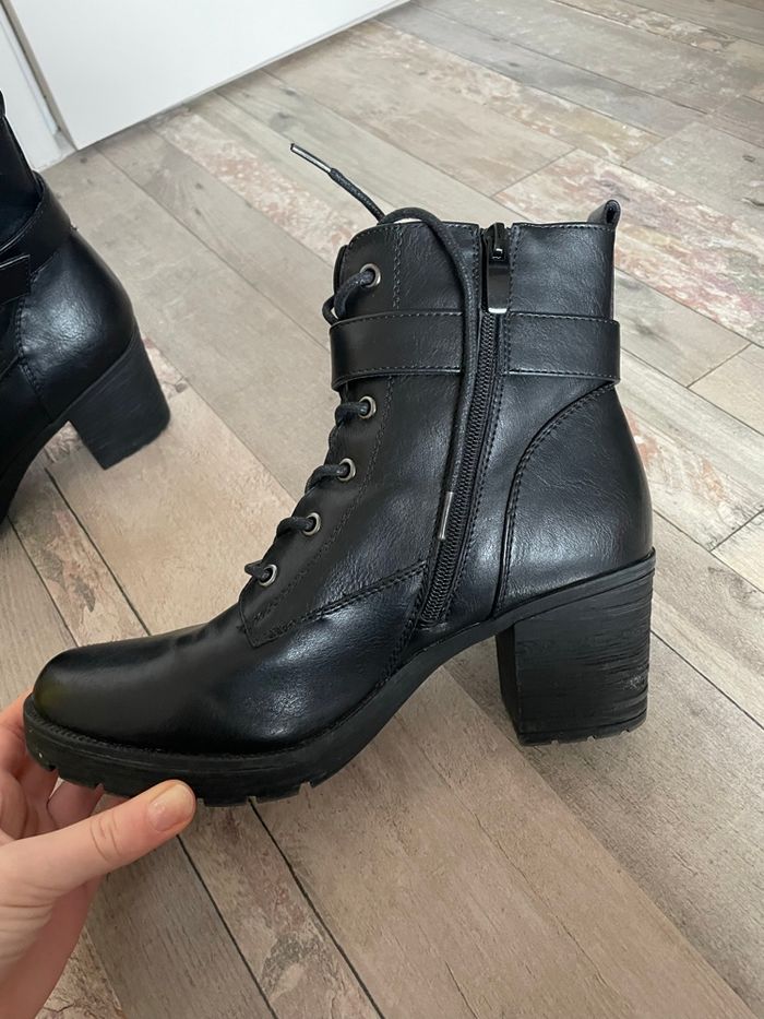 Bonjour 😊 Je vends une paire de bottines noir en effet cuir. Il y a une chaussure qui possède un petit défaut y sur le devant mais elles sont neuves. N’hésitez pas à me contacter pour plus de renseignements 😉 Jusqu’à -15% sur les lots 🌺