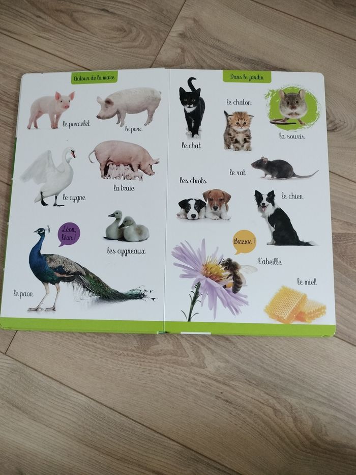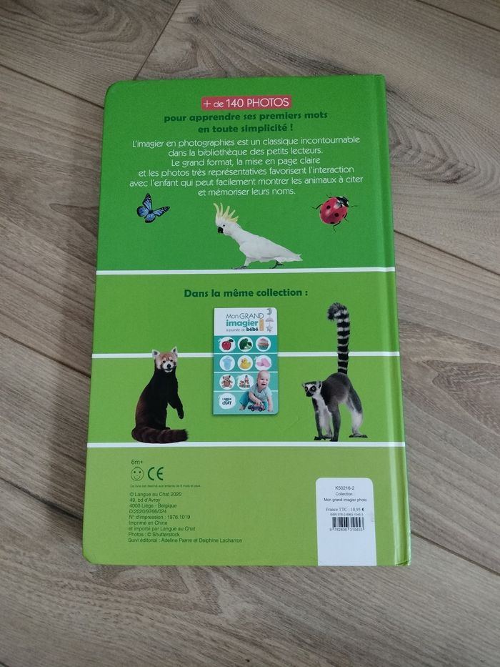 L'imagier, un incontournable dans la bibliothèque des tout-petits ! Plus de 140 photos pour apprendre le nom des animaux en toute simplicité ! Ce titre illustre les animaux classés par lieu de vie, de la ferme à la jungle en passant par la mer... La mise en page claire et les photos très représentatives favorisent l'interaction avec l'enfant qui peut facilement montrer les animaux à citer et mémoriser leurs noms. Le grand format aux coins ronds et le carton épais font de ce bel ouvrage un cadeau de naissance idéal. La couverture est un peu abîmée mais cela n' empêche pas l'utilisation.
