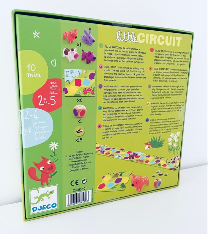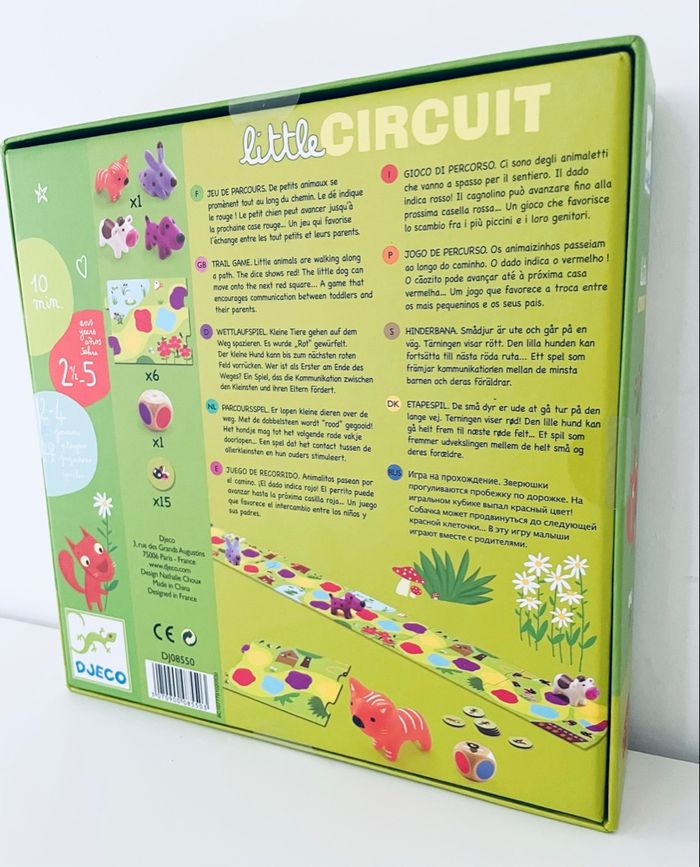 Jeux de société Little Circuit Djeco de 2 ans et demi à 5 ans Le jeu est vraiment adorable Article neuf avec étiquette, jamais ouvert Jeu de parcours. De petits animaux se promènent tout au long du chemin. Le dé indique le rouge ! Le petit chien peut avancer jusqu’à la prochaine case rouge… Qui arrivera le premier au bout du chemin ? Un jeu qui favorise l’échange entre les tout petits et leurs parents.