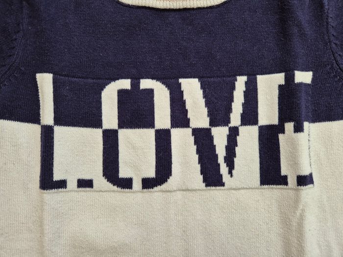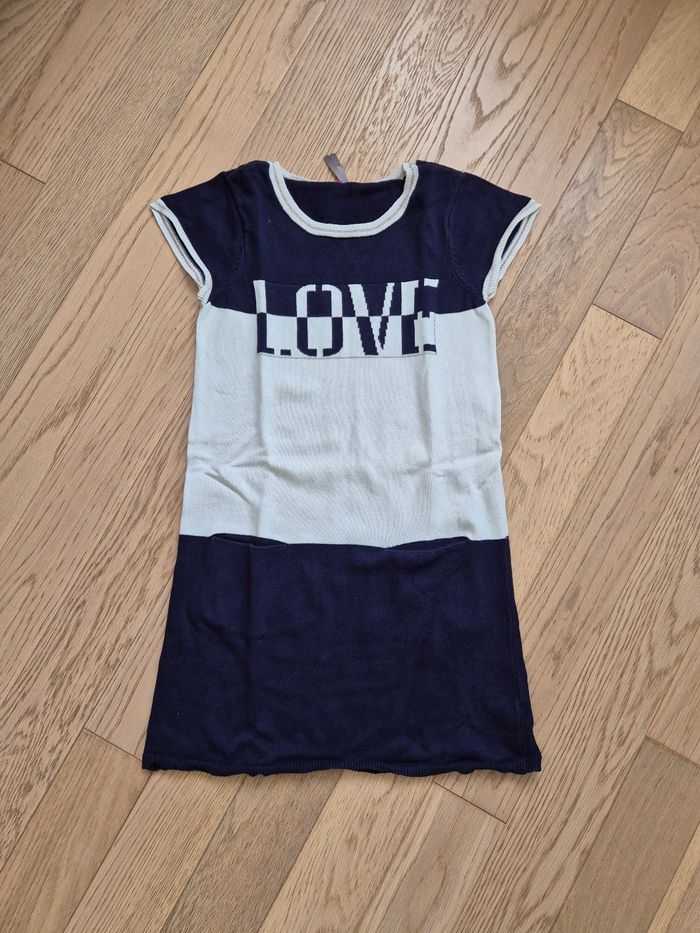 Robe pull sans manches, en très bon état Parfait pour printemps automne hiver avec des collants - Marque : Orchestra - Taille : 12 ans (152 cm) - Coloris : blanc et bleu marine, inscription Love, liseré brillant cuivré au col et manches - 2 poches devant - Sans trou, petites taches rosées très discrètes devant - Lavable en machine à 30°C - Composition : 100% coton - Maison non fumeur et sans animaux #elfedneiges12ans #elfedneigesfille