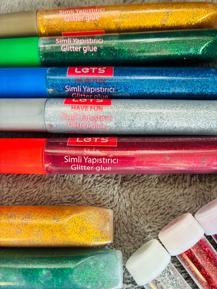 Lot de tubes de paillettes (certains très légèrement entamés : voir photo) Et colle / glue pailletée scintillante Différentes couleurs Seuls quelques uns ont été ouverts une fois Marques : crayola et Lets #stefetjuju51jeux maison non fumeurs bien d’autres choses dans mon dressing de nouveaux articles très régulièrement nombreux # dans mon profil pour faciliter vos recherches merci pour votre visite et belle journée ☺️ #lot #colle #scintillante #paillette #crayola