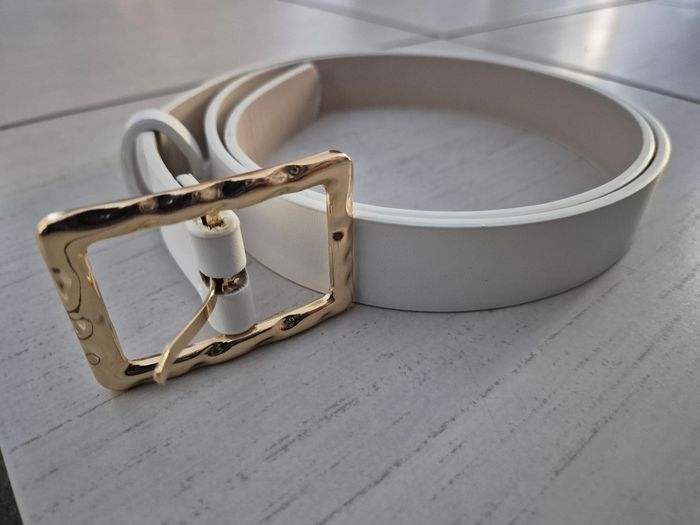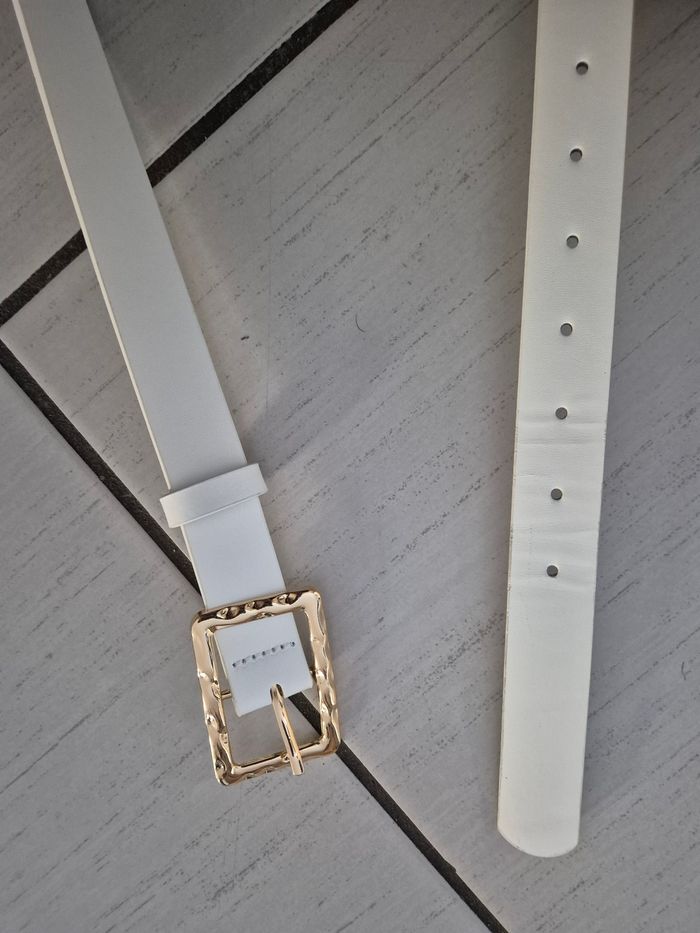ceinture blanche femme 103cm boucle rectangulaire dorée juste essayée. jamais portée
