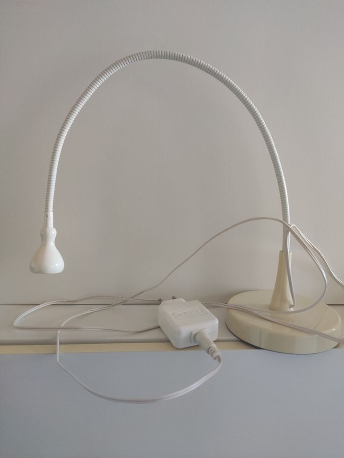 Lampe à poser en très bon état de fonctionnement, se branche sur le secteur, le pied a toutefois un peu jauni. Acheté à Ikea.