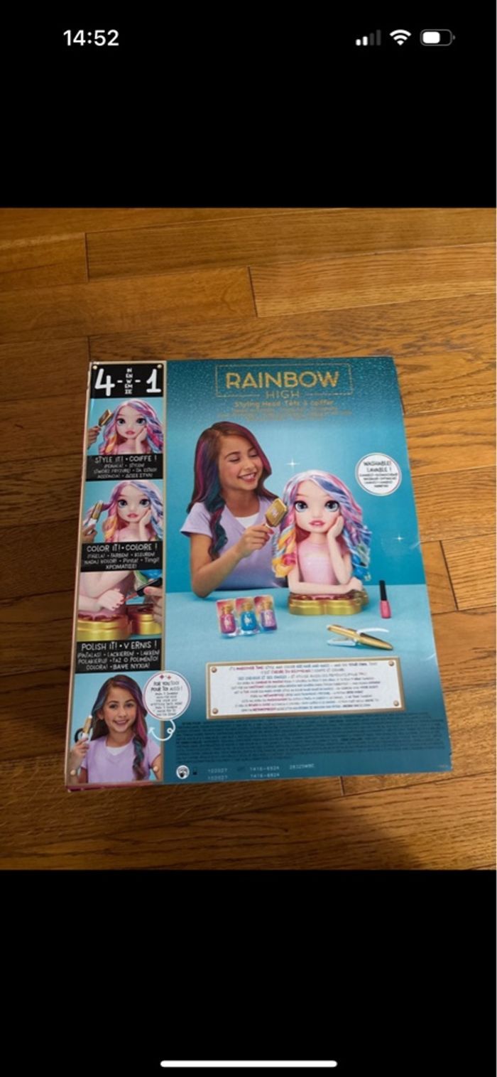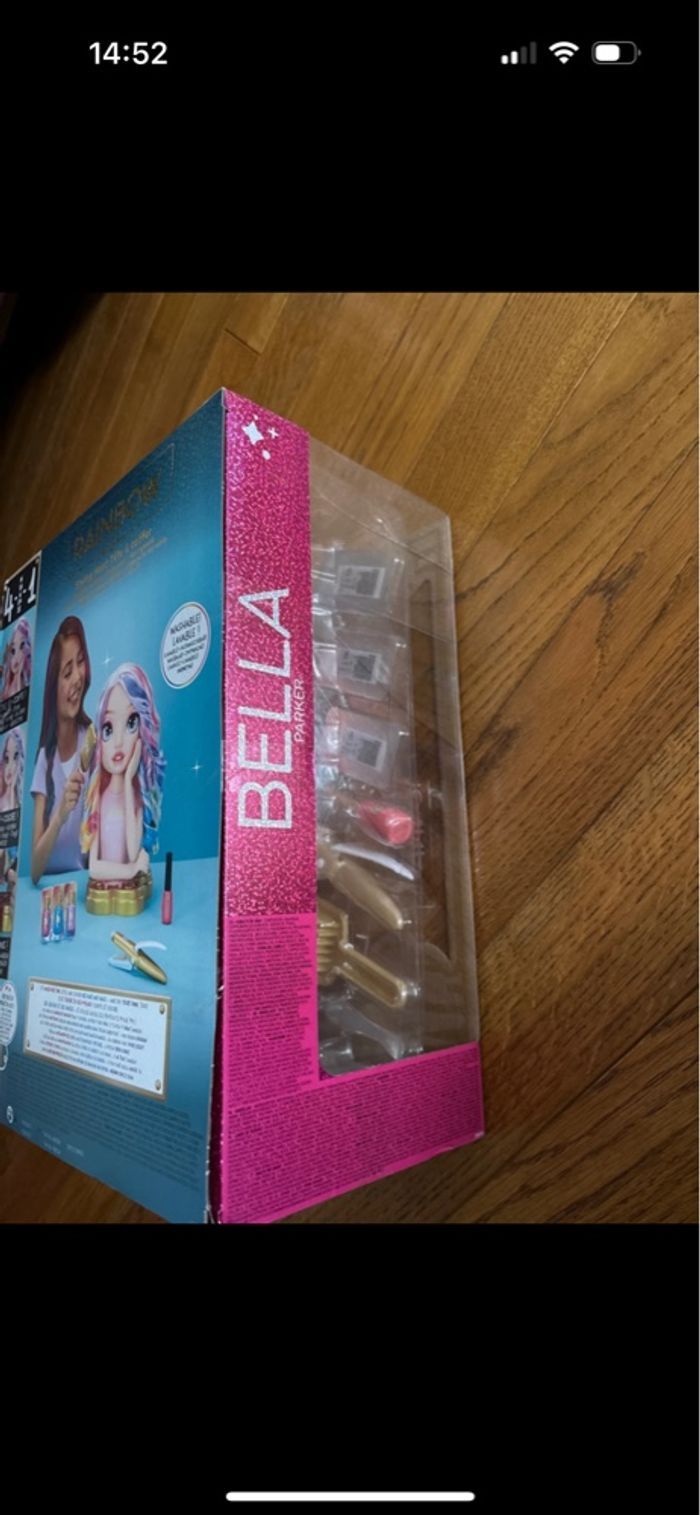 Tête à coiffer Bella Parker Rainbow High. 4 en 1 Coiffe, colore, vernis, pour toi aussi. Lavable À partir de 4 ans Totalement neuf sans on emballage d’origine. Ma fille l’a eu en double à son anniversaire.