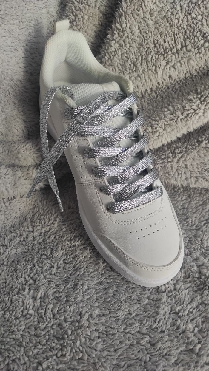 ✨ Shoe Laces Glitter argentés – Lacets plats à paillettes 120 cm Ajoute une touche lumineuse à tes sneakers avec ces lacets plats argentés à paillettes. Les paillettes sont intégrées directement dans le tissage, ce qui garantit une excellente tenue sans s’enlever avec le temps 👟 ✔️ Largeur : 7 mm ✔️ Longueur : 120 cm ✔️ État : neuf 🎨 Couleurs disponibles : argenté, or, noir, rose, blanc 💰 Prix : 3 € la paire 📩 MP pour lots et panachage Mots-clés : shoe laces glitter, lacets argentés, lacets paillettes, lacets plats, sneakers, baskets, accessoire chaussure