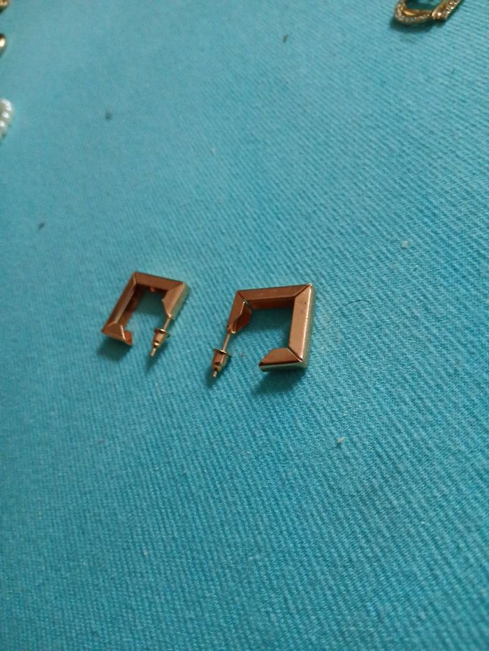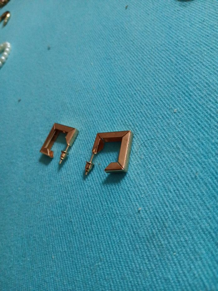 Boucle d oreille carre neuve dorée - photo numéro 2