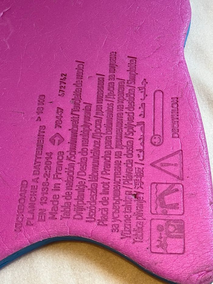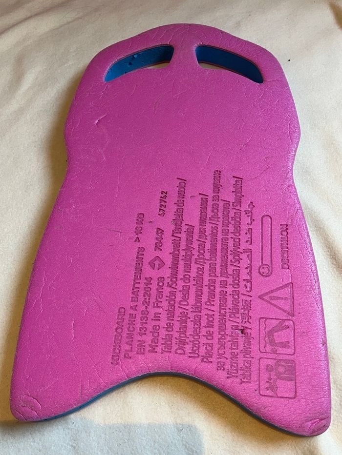 vends une planche à battements de chez décathlon marque Nabaiji couleur rose et bleu petite usure comme montrée sur la photo 4 euros Mes autres annonces d’accessoires de sport #lma42accessoire #lma42sport