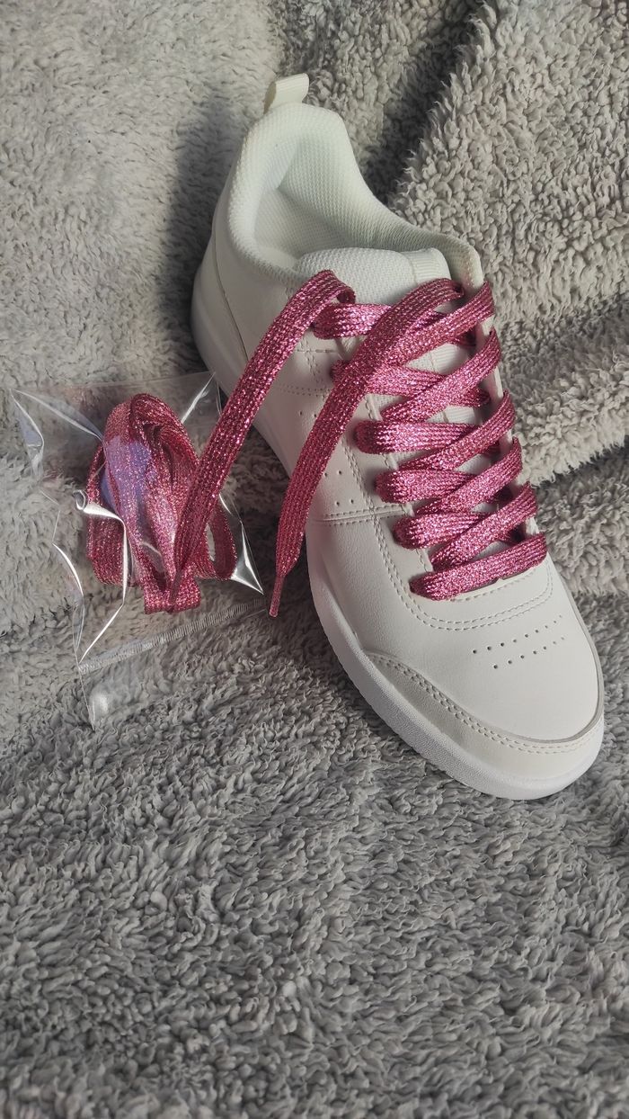 🌸 Shoe Laces Glitter roses – Lacets plats à paillettes 120 cm Apporte une touche fun et tendance à tes baskets avec ces lacets roses à paillettes. Le glitter est directement intégré au lacet pour un effet durable sans perte de matière 👟 ✔️ Lacets plats larges – 7 mm ✔️ Longueur : 120 cm ✔️ Neufs 🎨 Couleurs au choix : rose, blanc, noir, argenté, or 💰 3 € la paire 📩 MP pour panachage Mots-clés : shoe laces glitter, lacets roses, lacets paillettes, streetwear, sneakers, accessoires