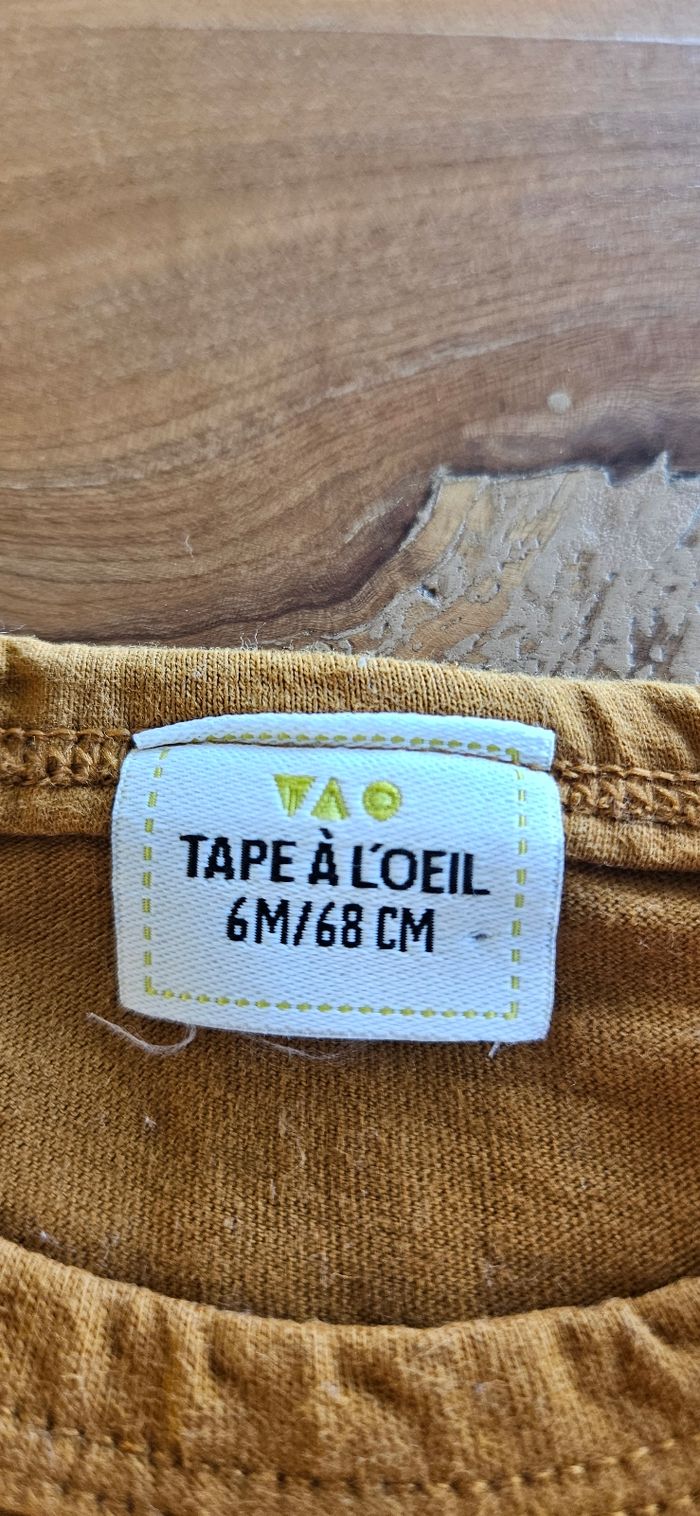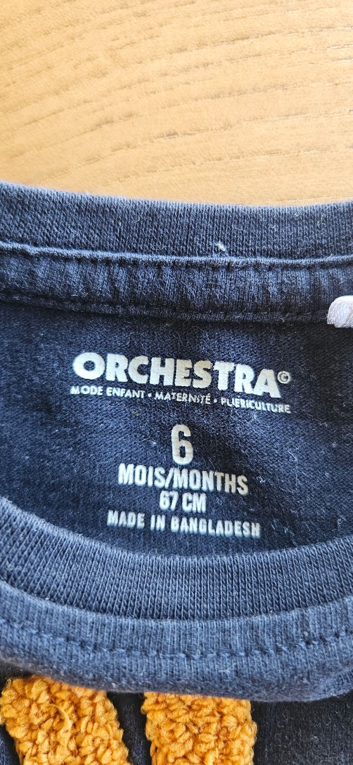 Lot de 3 tee-shirts manches longues bébé garçon : • 1 bleu ciel, écritures et dessin sur le devant. Ouverture pressionnée dans le dos (Sucre d'orge) • 1 bleu marine, dessin imprimé sur le devan et écriture en relief (Orchestra) • 1 marron uni, poche décorative sur le devant. Ouverture pressionnée sur l'épaule. (Tape à l'œil) Porté mais reste en très bon état. Aucune tâche, ni trou 👌