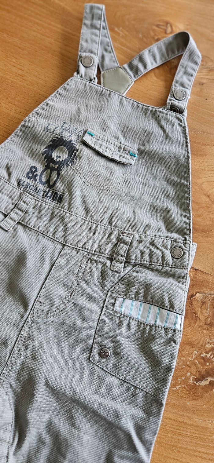 Salopette grise bébé garçon. Dessin imprimé sur le devant. Ouverture pressionnée aux épaules, aux hanches et à l'entrejambe. Peu porté donc comme neuve. Aucune tâche, ni trou 👌