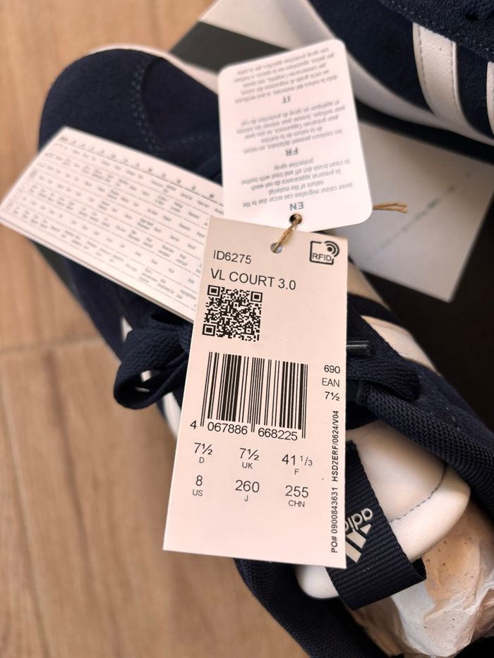 Vends Baskets/ sneakers ADIDAS VL court 3.0 neuves, jamais portées , dans leur emballage d’origine. taille 41 1/3, couleur bleue marine .