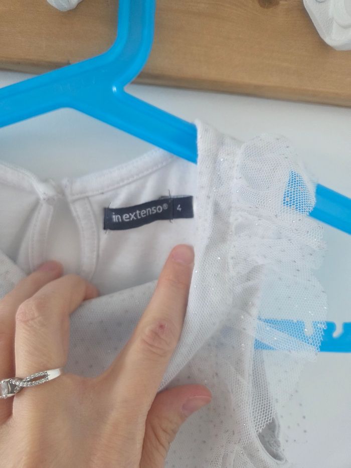 Robe taille 4ans. In extenso. En bon etat la couleur blanche n'est plus comme a l'origine. Avec paillettes et doublure intérieure.