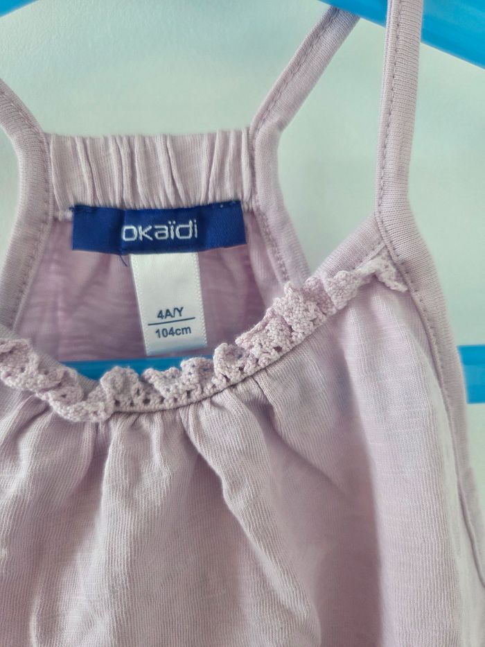 Tee-shirt courts Okaïdi 4ans. En très bon état. Couleur mauve.