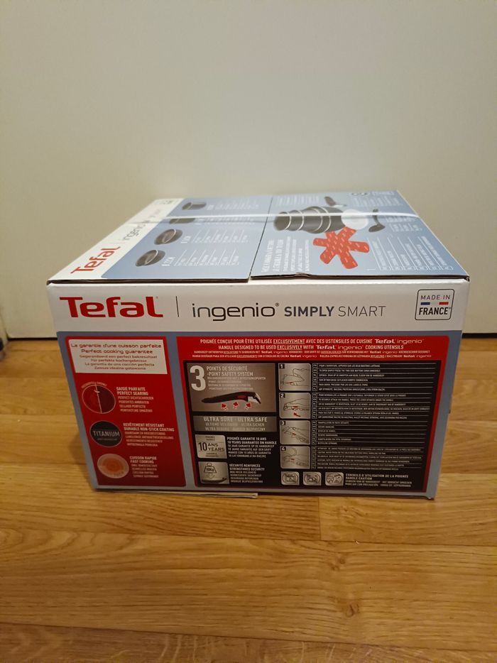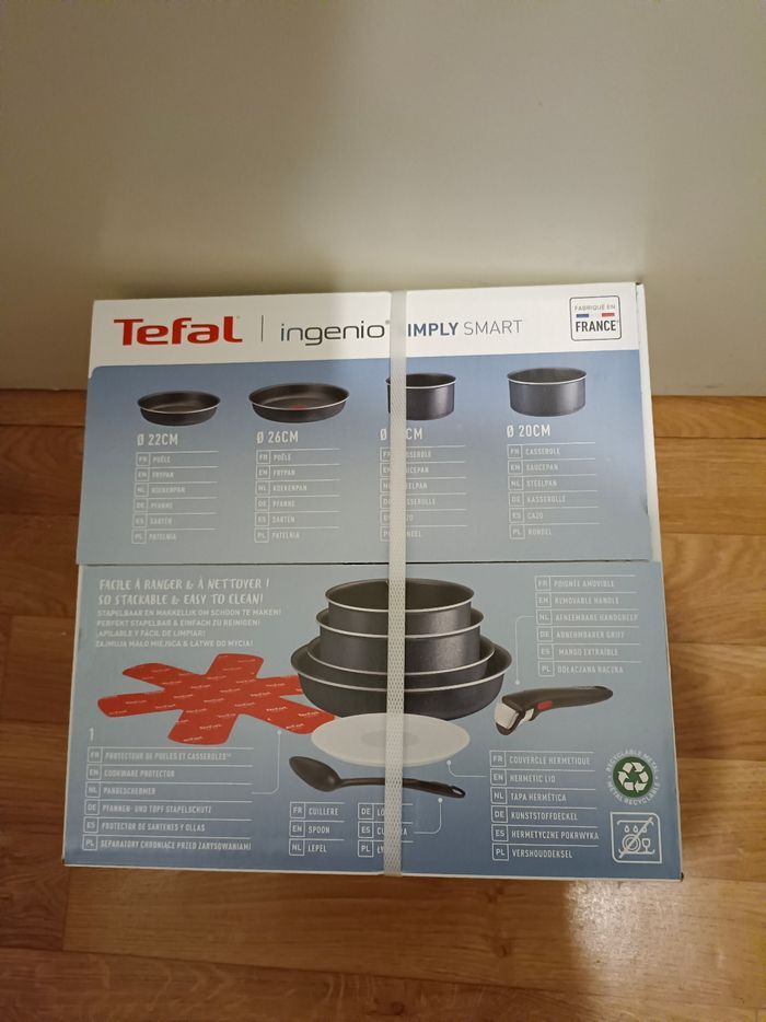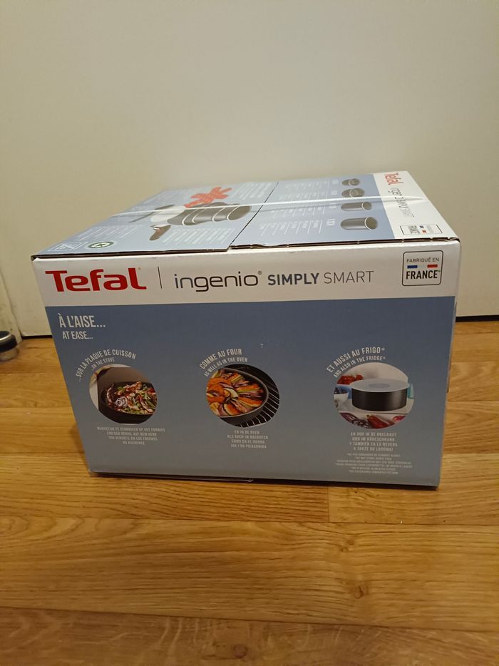Batterie de cuisine tefal ingenio simply smart de 8 pièces Poêle 26 cm Poêle 22 cm Casserole 20 cm Casserole 18 cm Poignée amovible Cuillère Protecteur de poêles et casseroles Couleur gris Tous feux et induction Neuf Envoi rapide Mondial Relay svp
